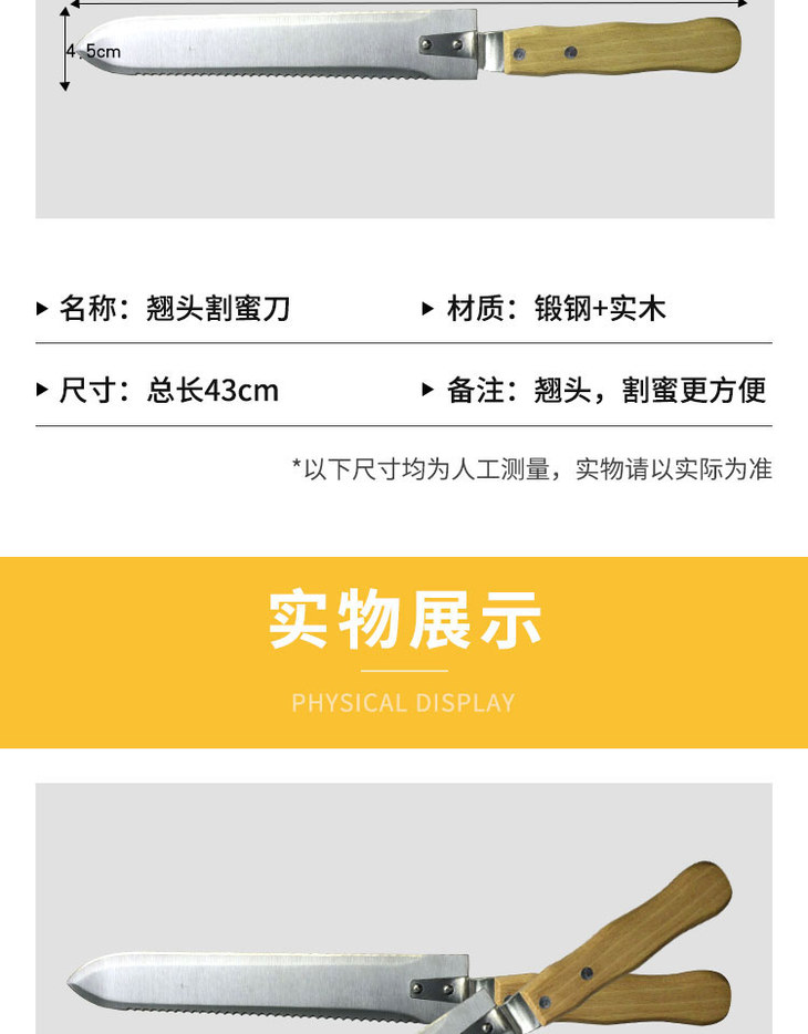 【正品保证】汪氏养蜂用具优质耐用割蜜刀出口型锯齿割刮封盖割蜜刀批发翘头割蜜刀