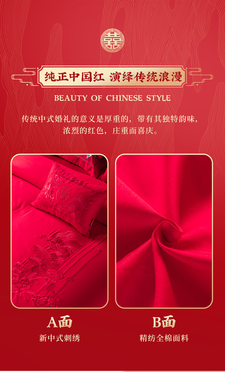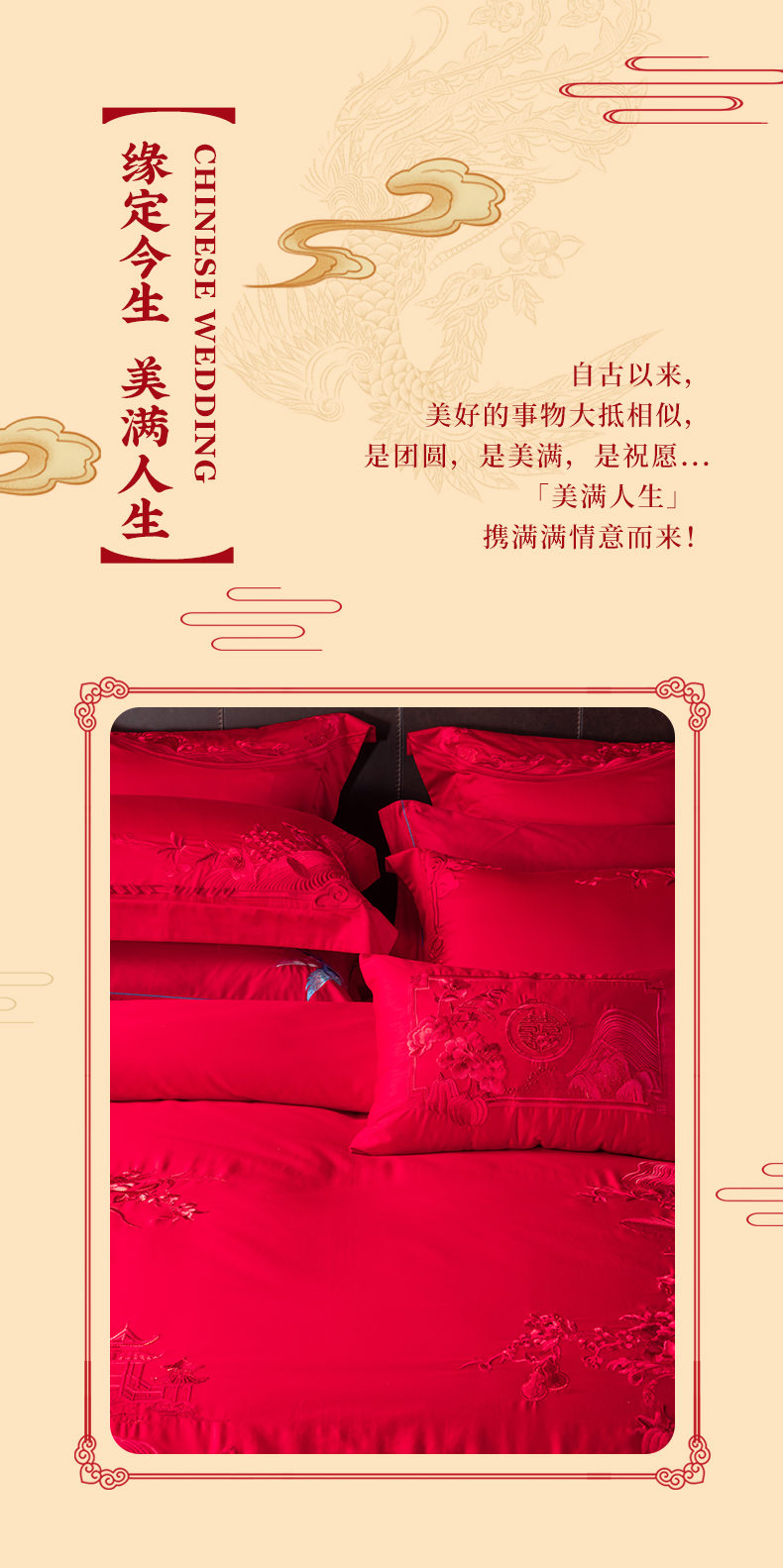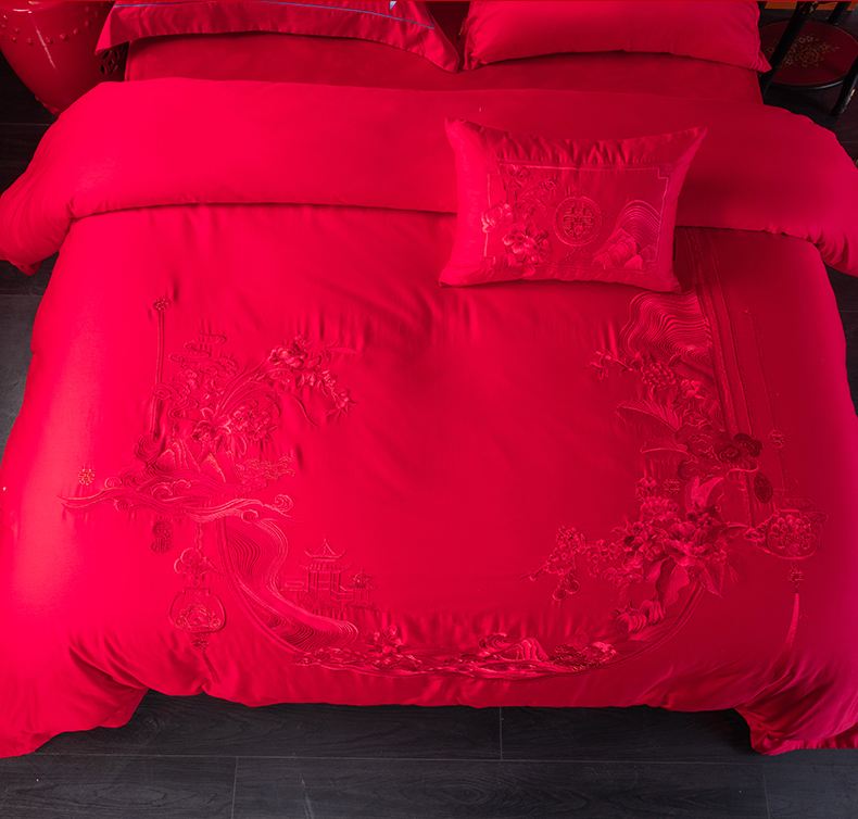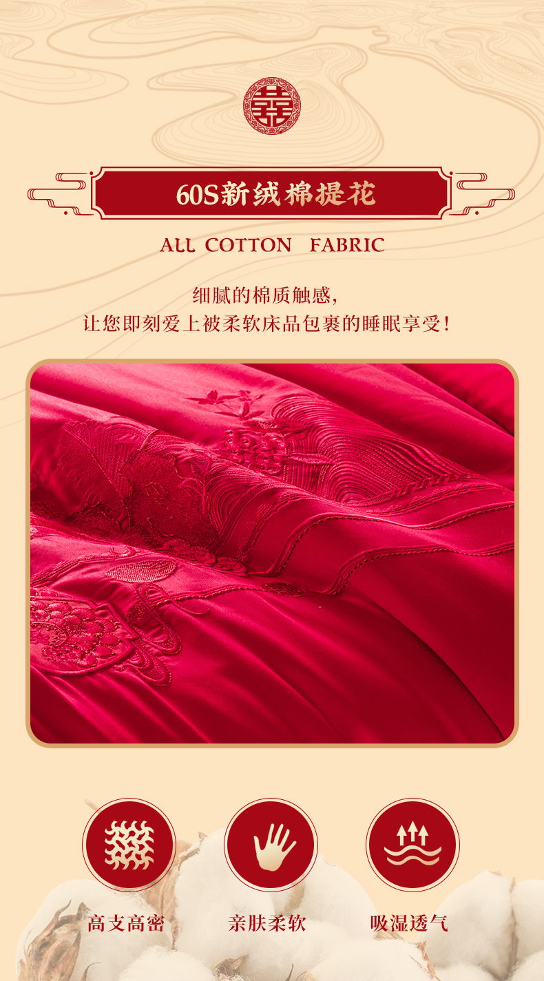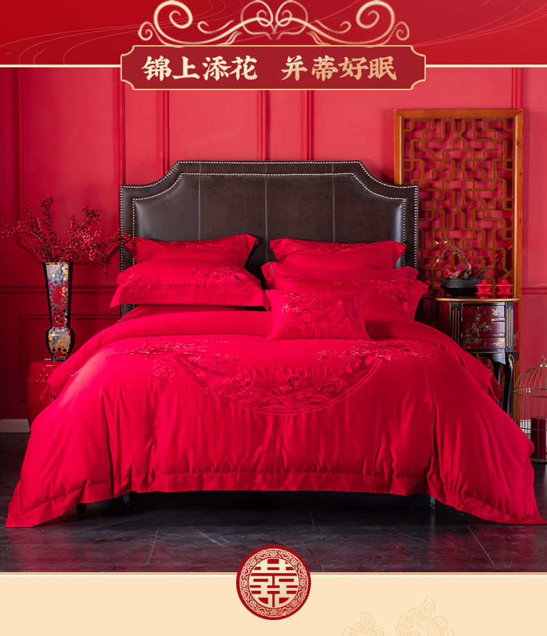 多喜爱-婚庆60S贡缎八件套《美满人生(红)》