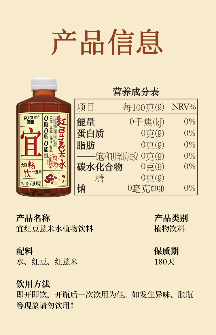 瑞果宜红豆薏米水植物养生饮 0糖 0脂 0能量