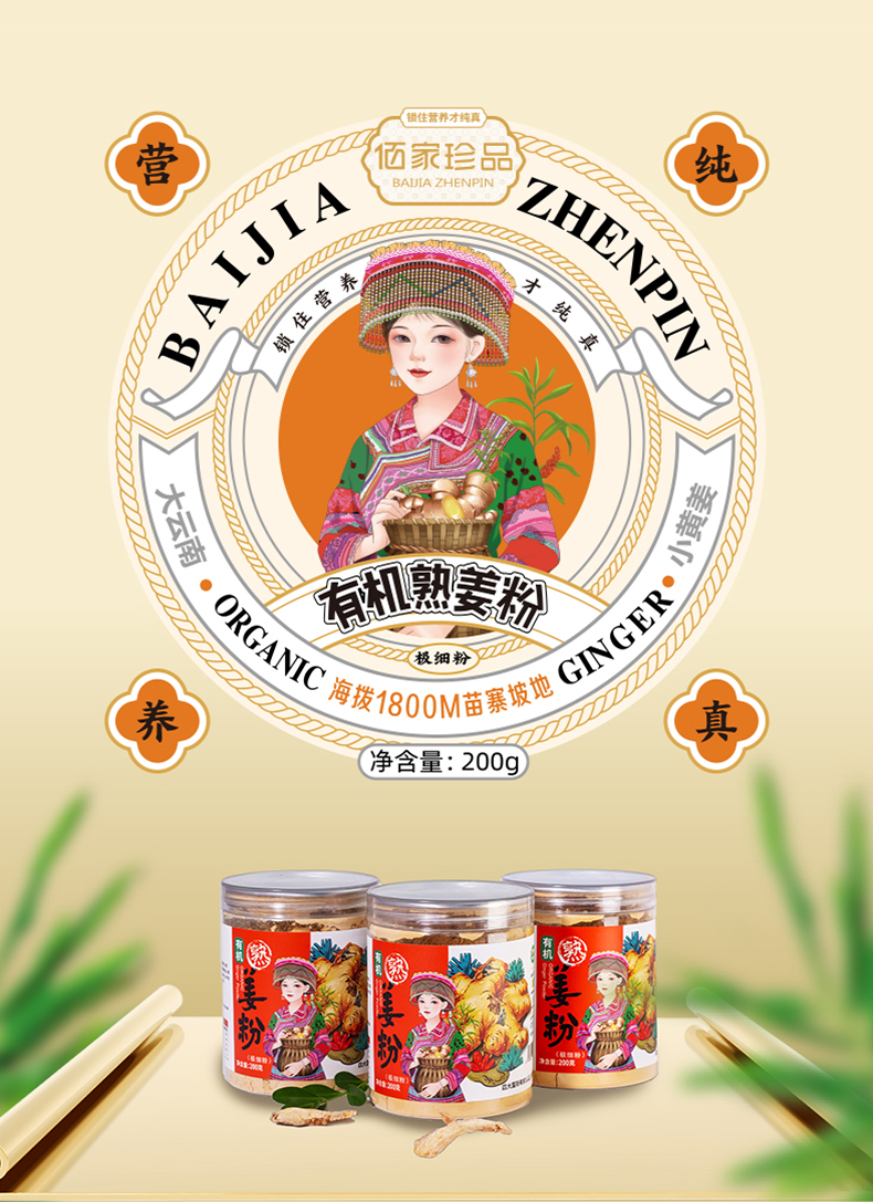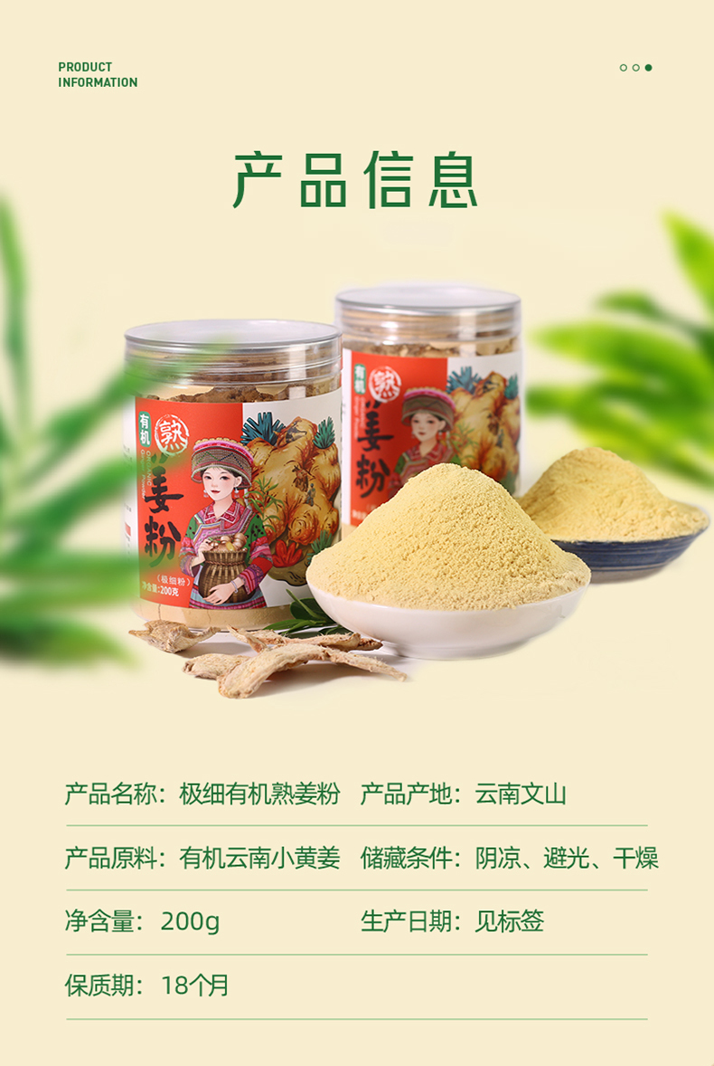 云南有机小黄姜粉200g食用超细纯熟姜粉炒制干姜粉泡水冲饮调料包邮