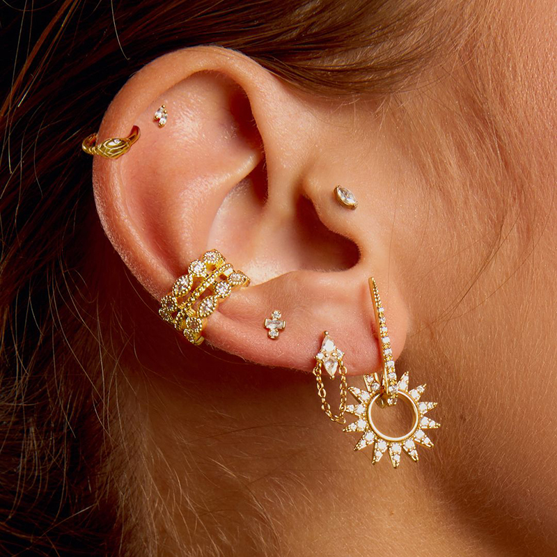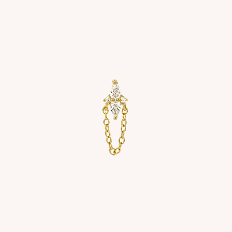 北京仓|MYA-BAY-DUAL MARQUISE-侯爵夫人 链条 金色 锆石 单只 耳环[比利时设计师]