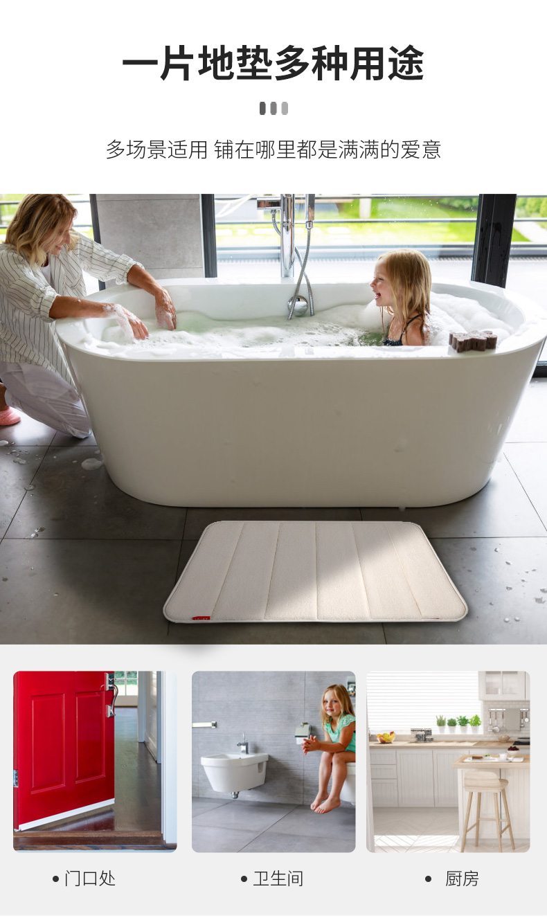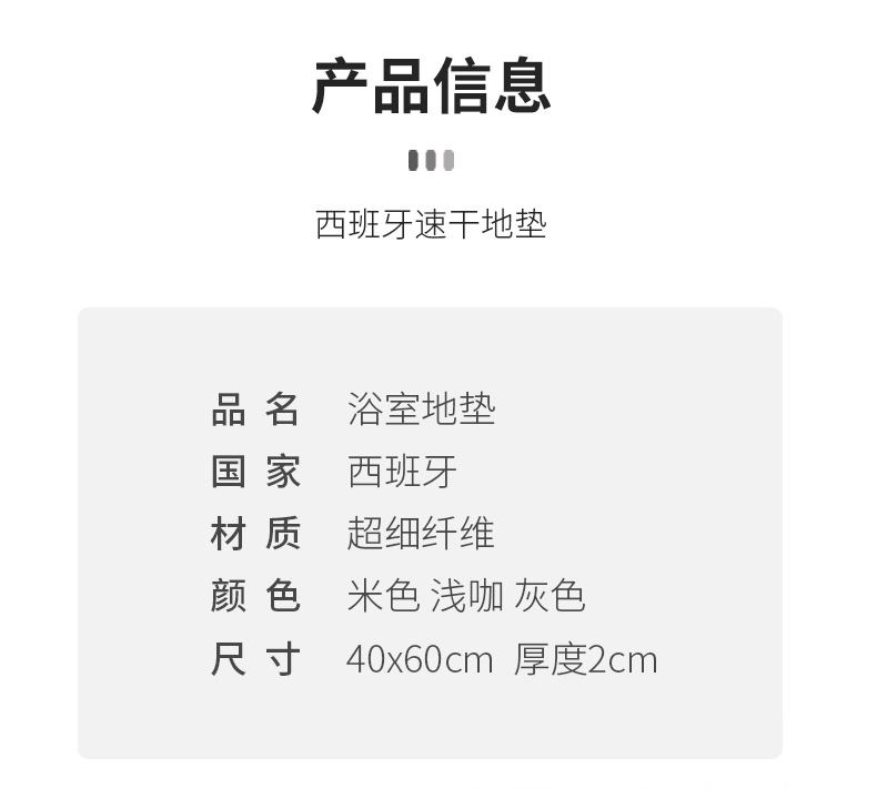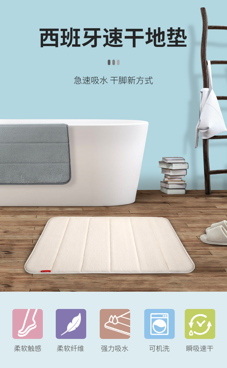 【6F】利快 地垫浴室防滑垫卫生间脚垫西班牙进口淋浴吸水地垫 灰色