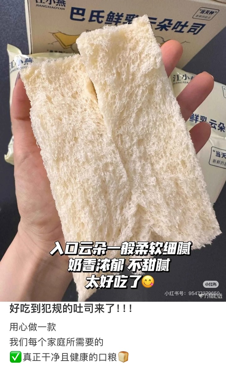 太太太太好吃啦!这个这个,江小燕的巴氏鲜乳云朵吐司,我已经偷偷吃完1箱,赶紧又下单了!是无边的嫩吐司哦,整一个都是厚厚软软,轻盈蓬松,还带着自然的甜润,而且配料简单,朴素又温暖,像妈妈的爱!极推荐!
