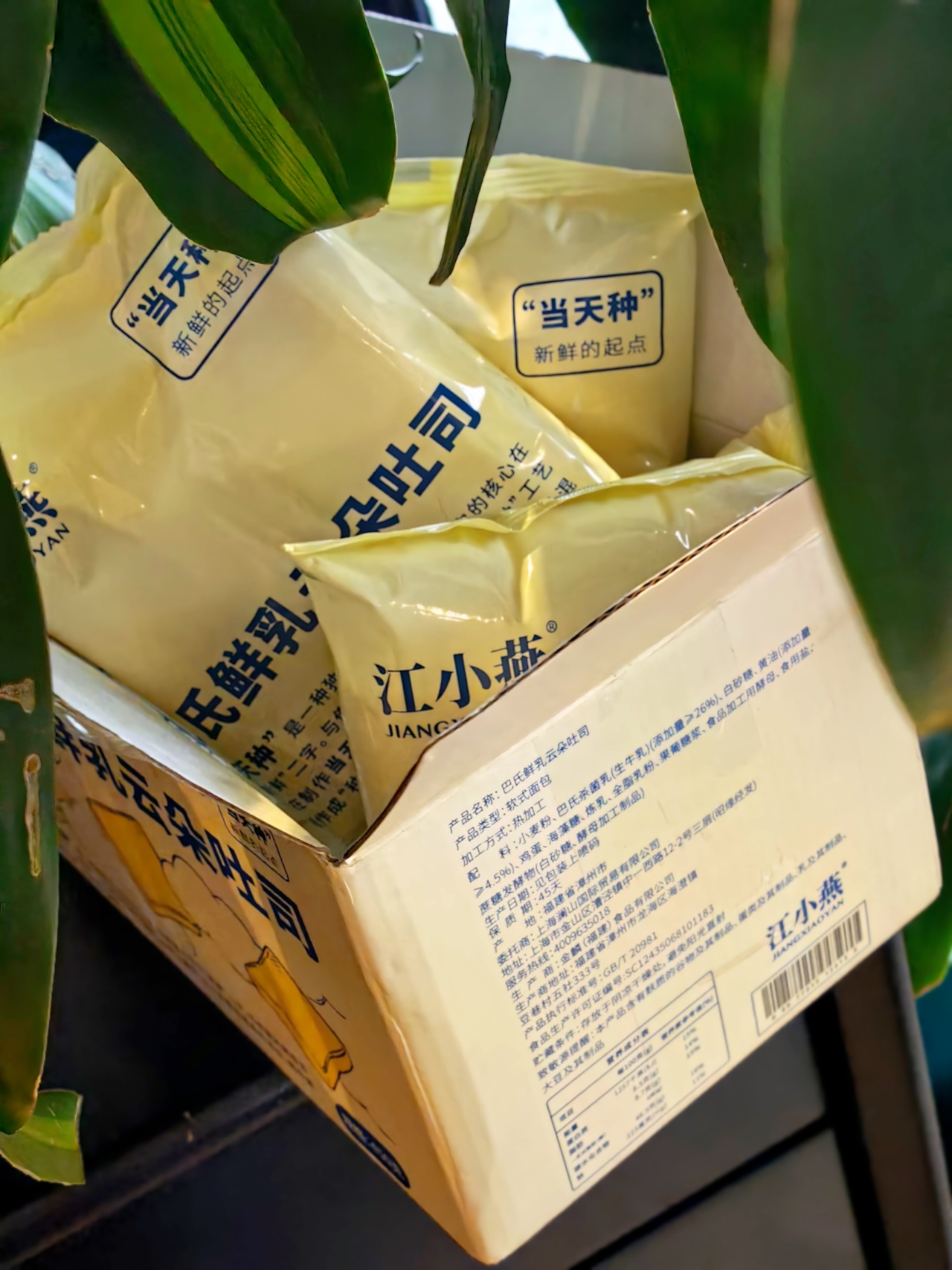 为了让每一口吐司都像刚出炉时那么新鲜,江小燕用的是"当天种",将时限精准锁定在一天之内。短保锁鲜的秘诀,搭配巴氏鲜乳的鲜活力量,才有了这云朵般的软嫩口感。更令人安心的是,配方非常干净:0添加膨松剂、0乳化剂、0香精、0色素、0防腐剂,从小朋友到长辈,都能放心享用。