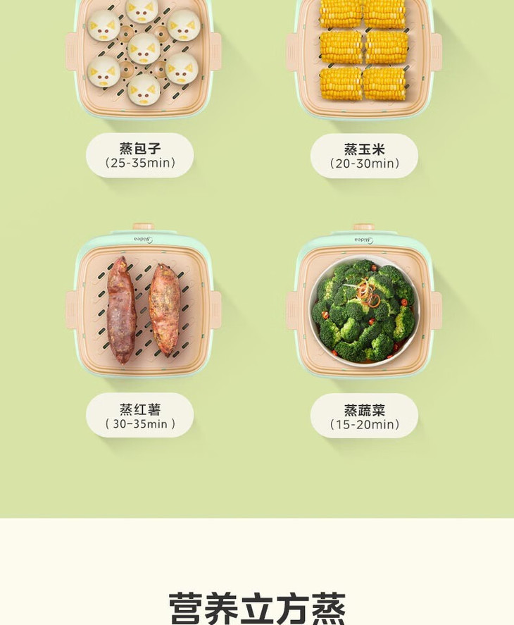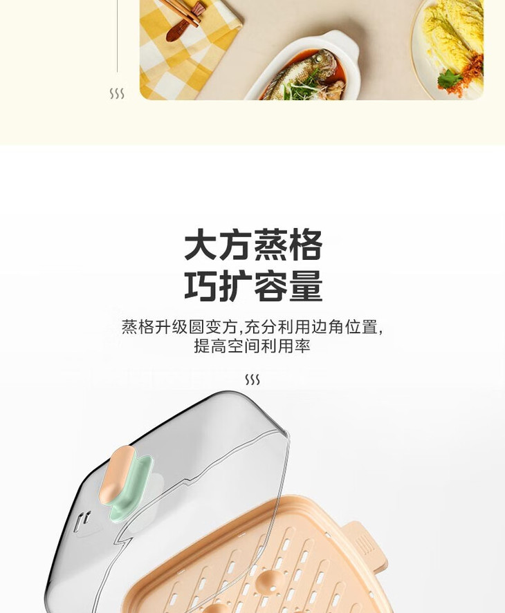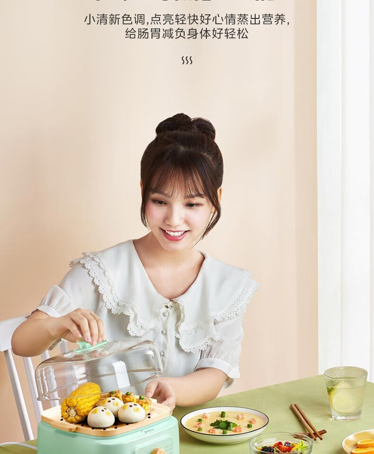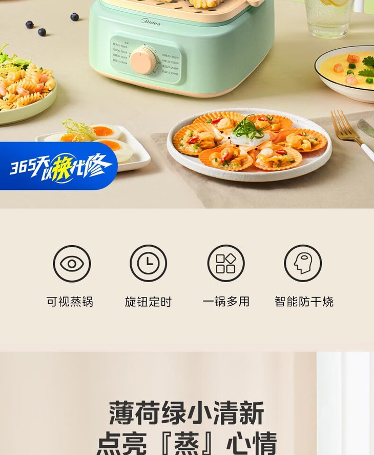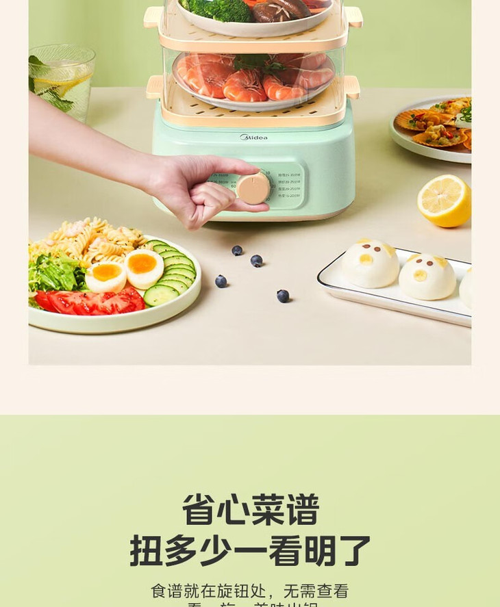 美的(Midea)电蒸锅 家用多功能可定时分体式6升大容量蒸锅电蒸笼 蒸煮两用 家用蒸煮锅MZ-ZG2020Q3-402G