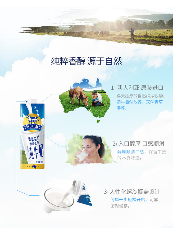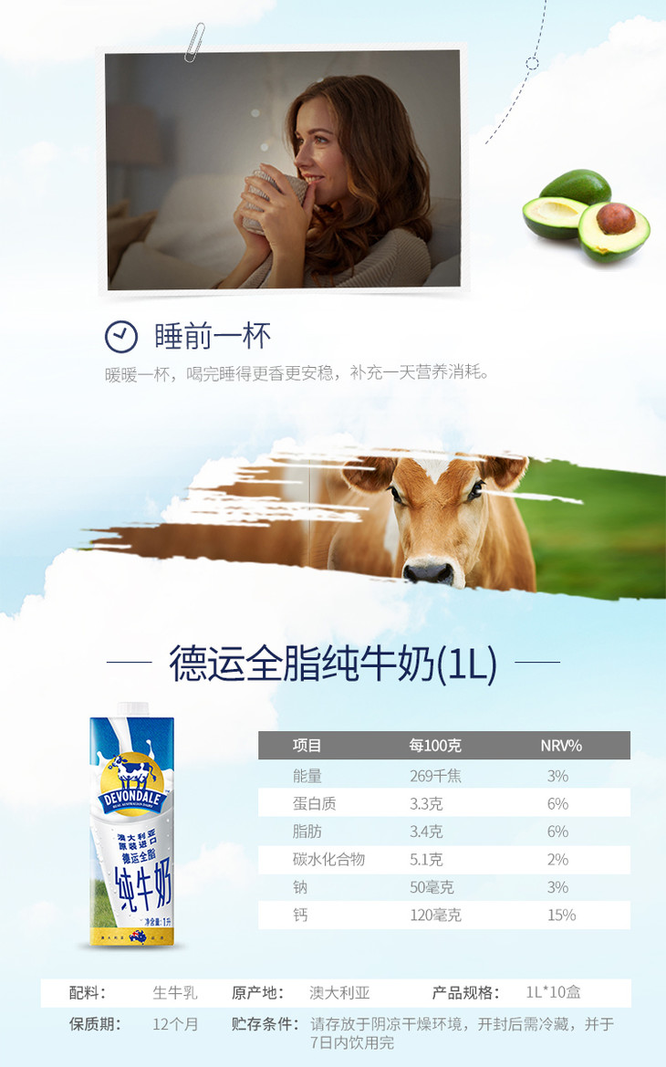 【1L|全脂牛奶】德运 全脂牛奶 原装进口 1L*1盒