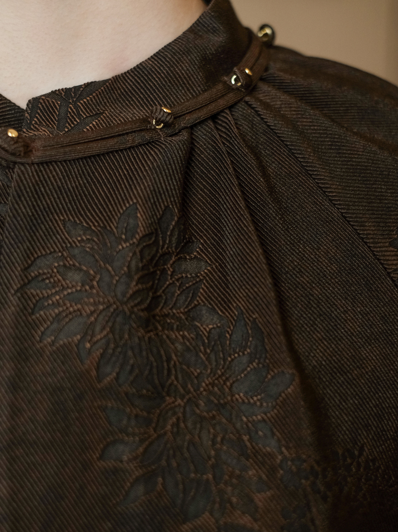 盛唐牡丹 |孔雀蓝双面穿菊花纹提花真丝外套