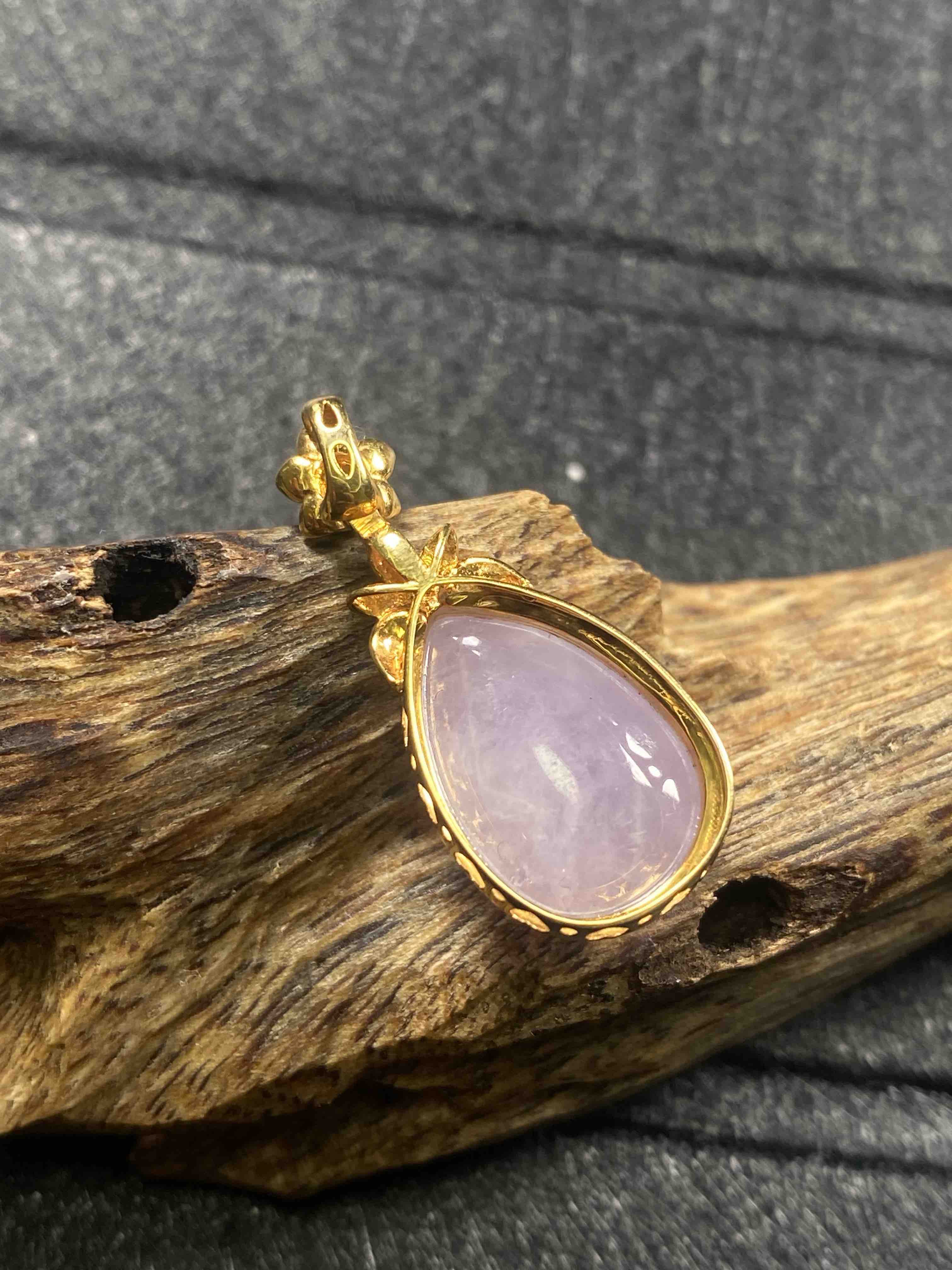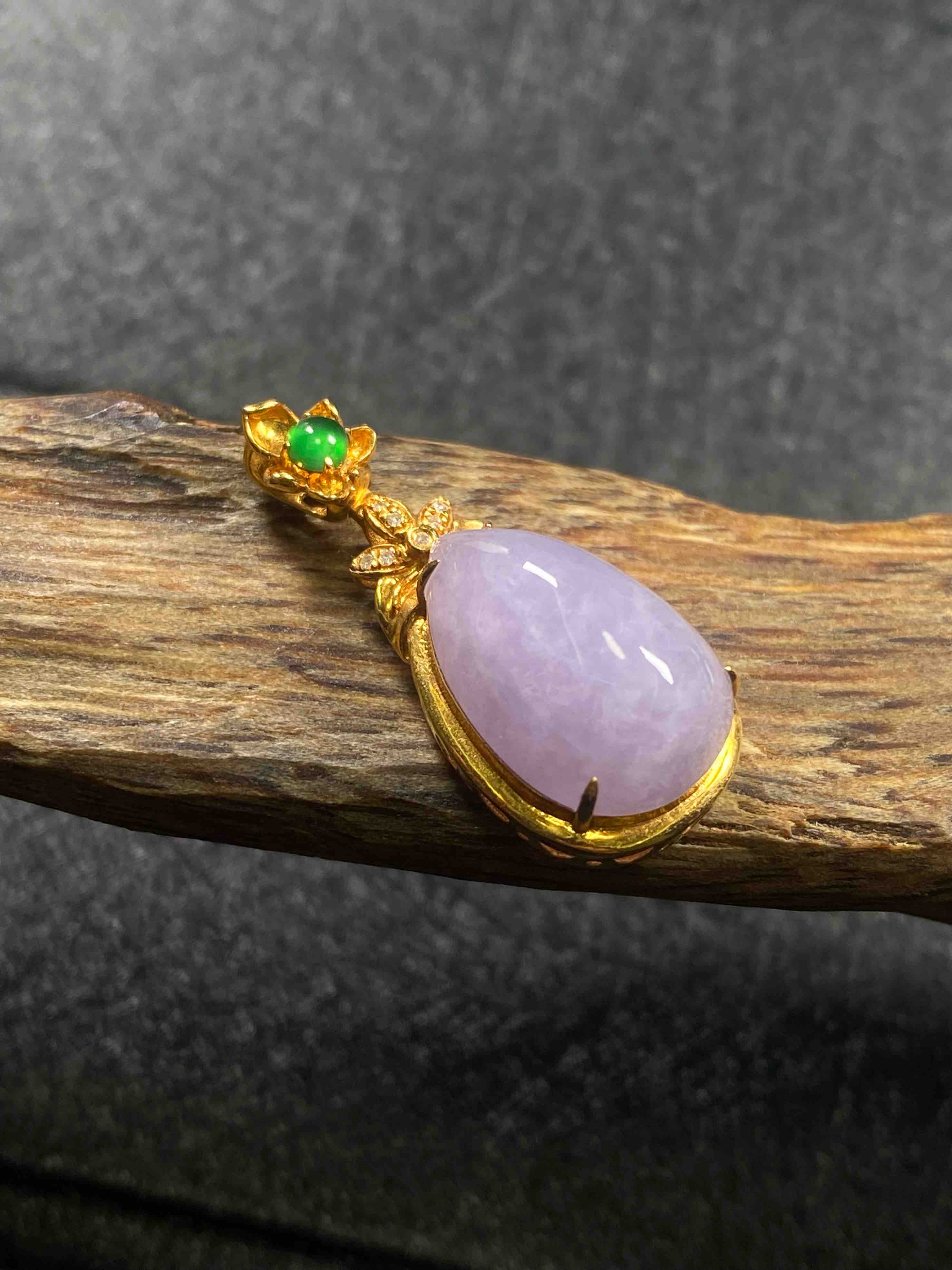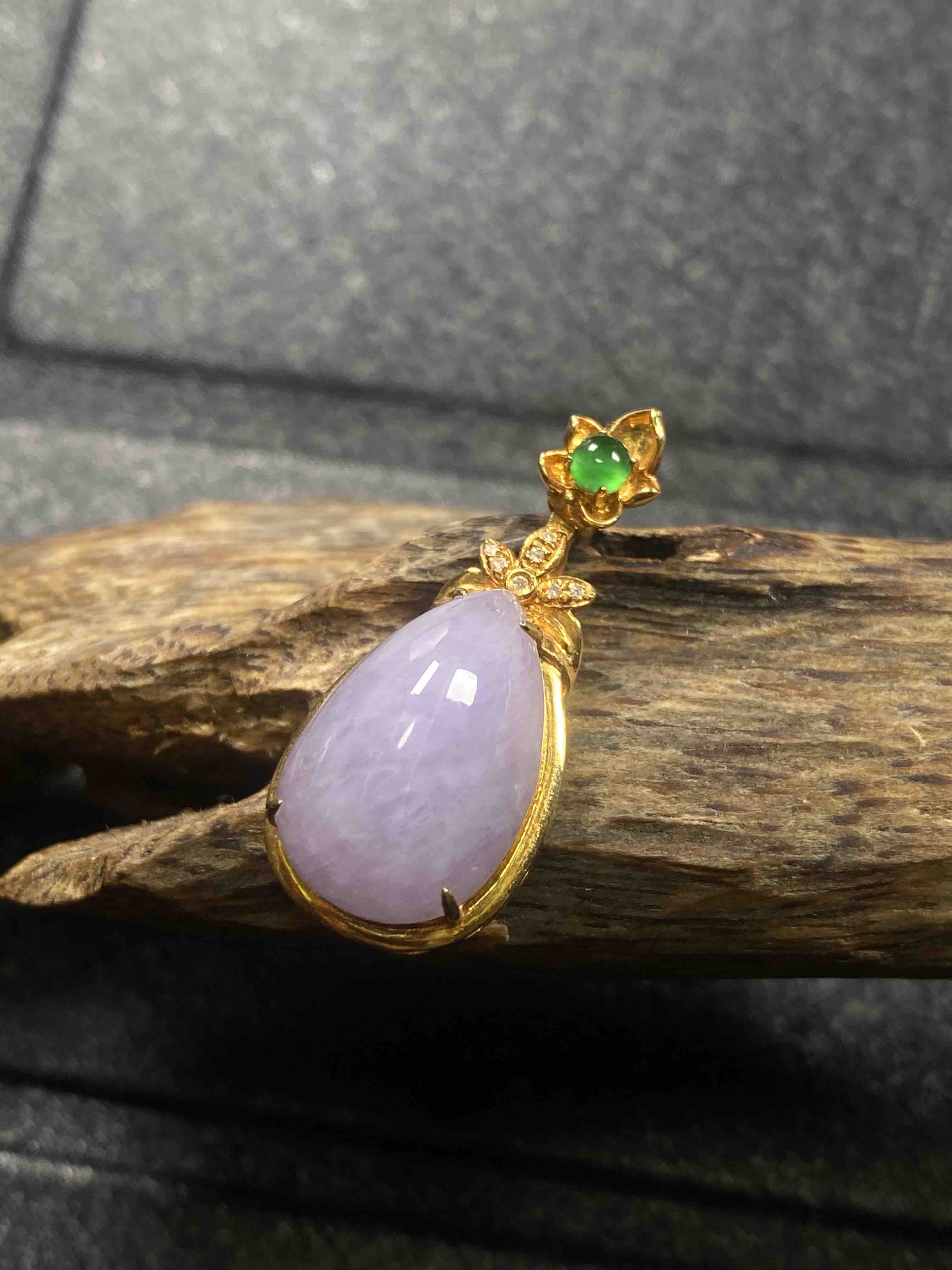 【FC0102】18K镶嵌翡翠紫水滴吊坠 饱满无裂 款式精美 优雅美观 裸石尺寸:15.6*10.3*6mm 超值价💰2300