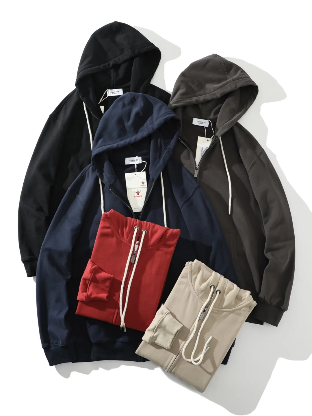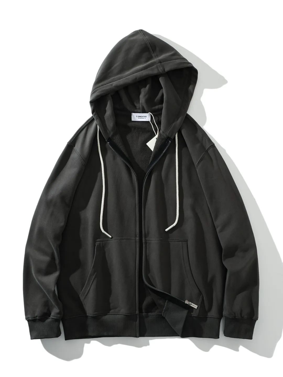 F030603高克重棉质混纺内里科技擦毛设计拉链开衫外套纯色抓绒琐温保暖长袖连帽卫衣