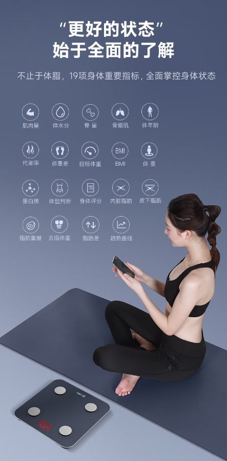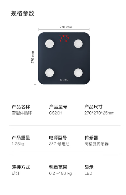 云康宝 智能体脂称 HUAWEI HiLink生态产品 人体成分分析家用秤 CS20H【充电款】