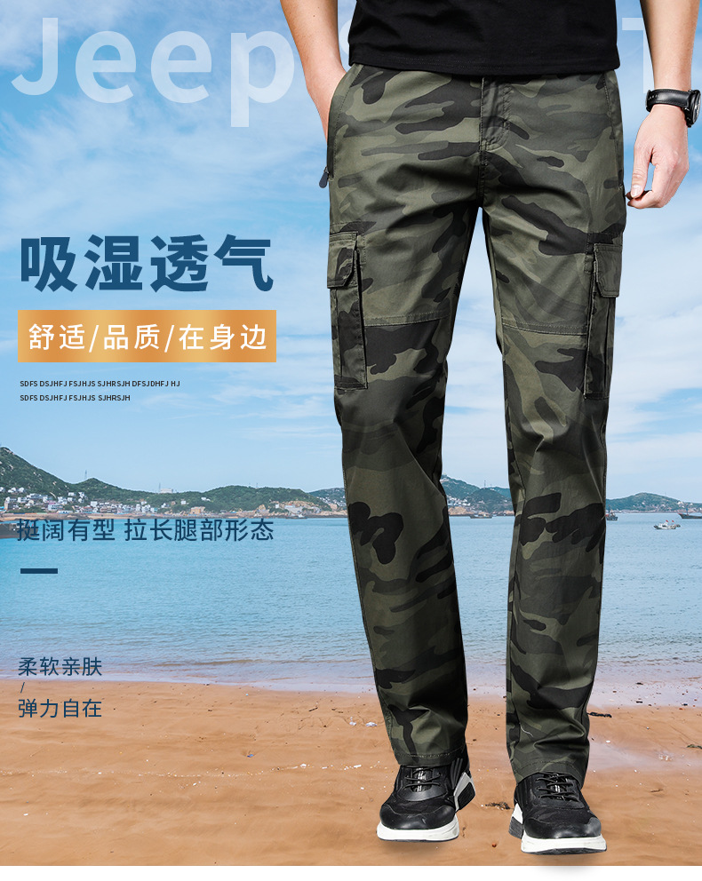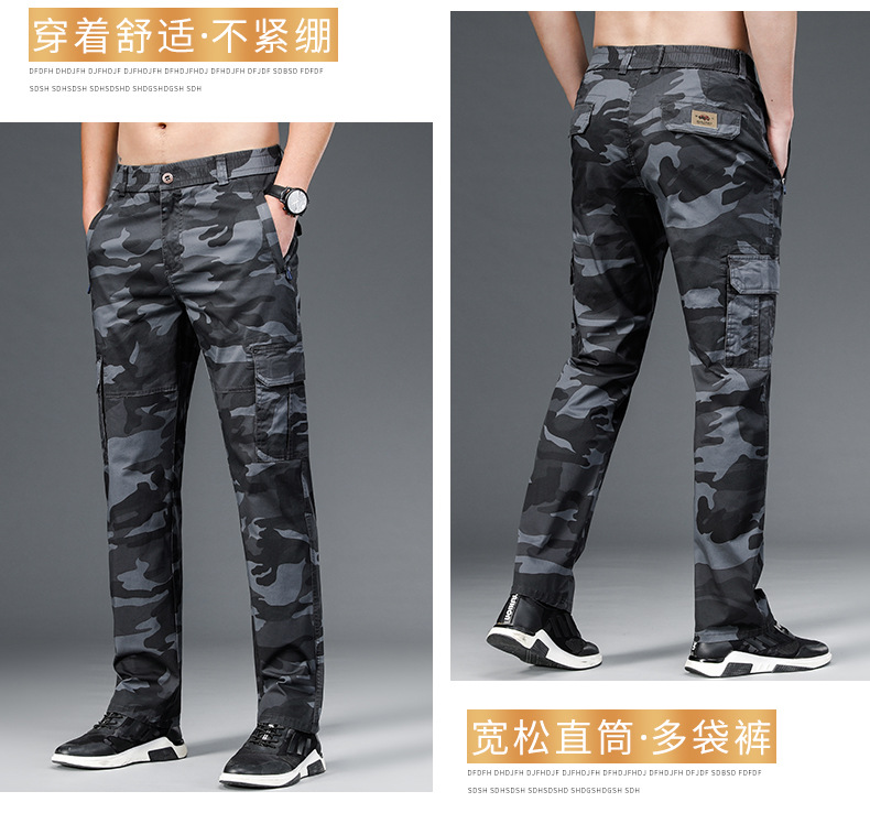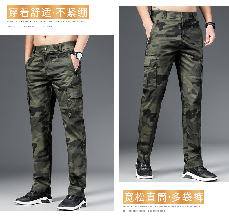 【服饰鞋包】-迷彩工装裤多袋男士长裤宽松大码春夏薄款户外休闲裤