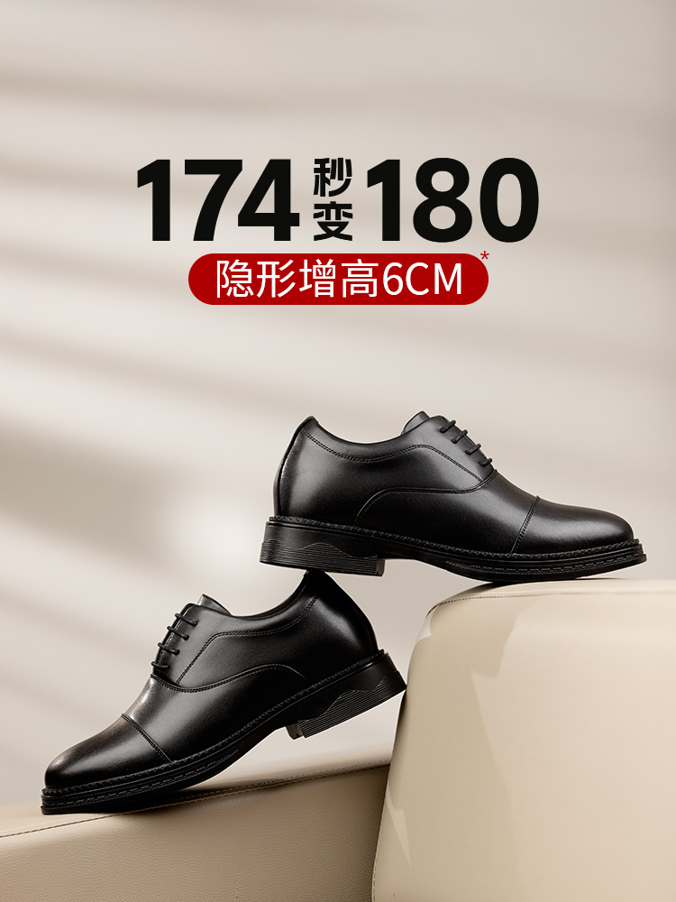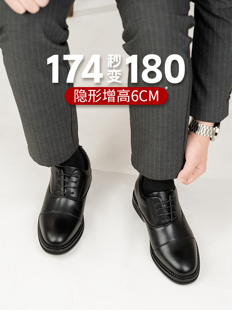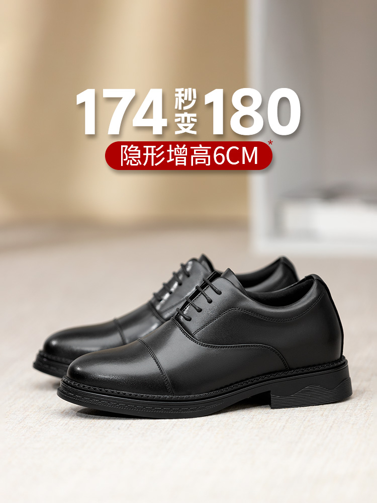 男士增高6cm皮鞋时尚休闲商务正装英伦系带内增高男鞋结婚新郎鞋
