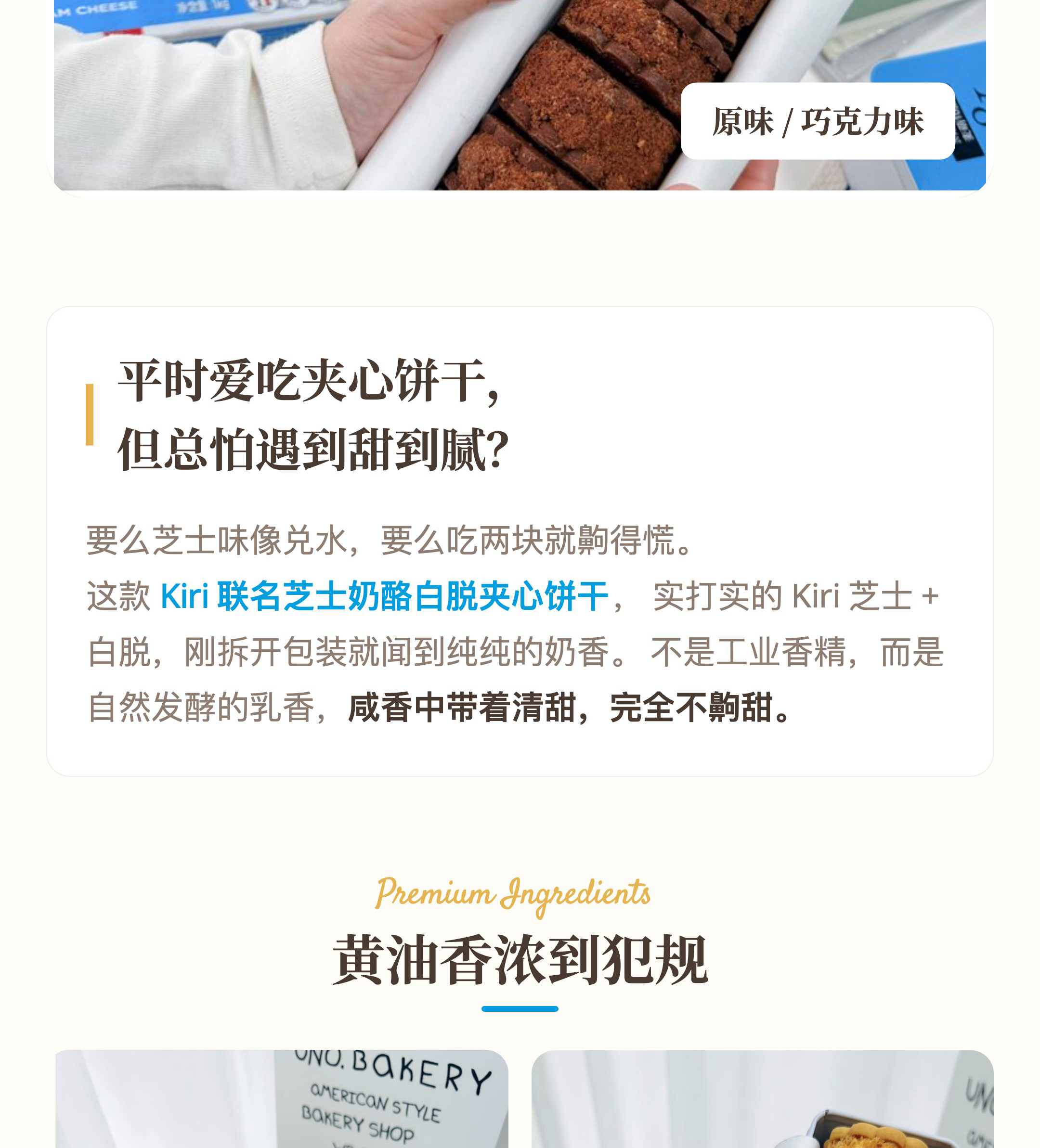 麦萌10品&Kiri·芝士奶酪白脱夹心饼干|外层采用进口黄油、杏仁粉做成的沙布列饼干,内夹冰淇淋口感的特调奶霜,口感丝滑,入口即化