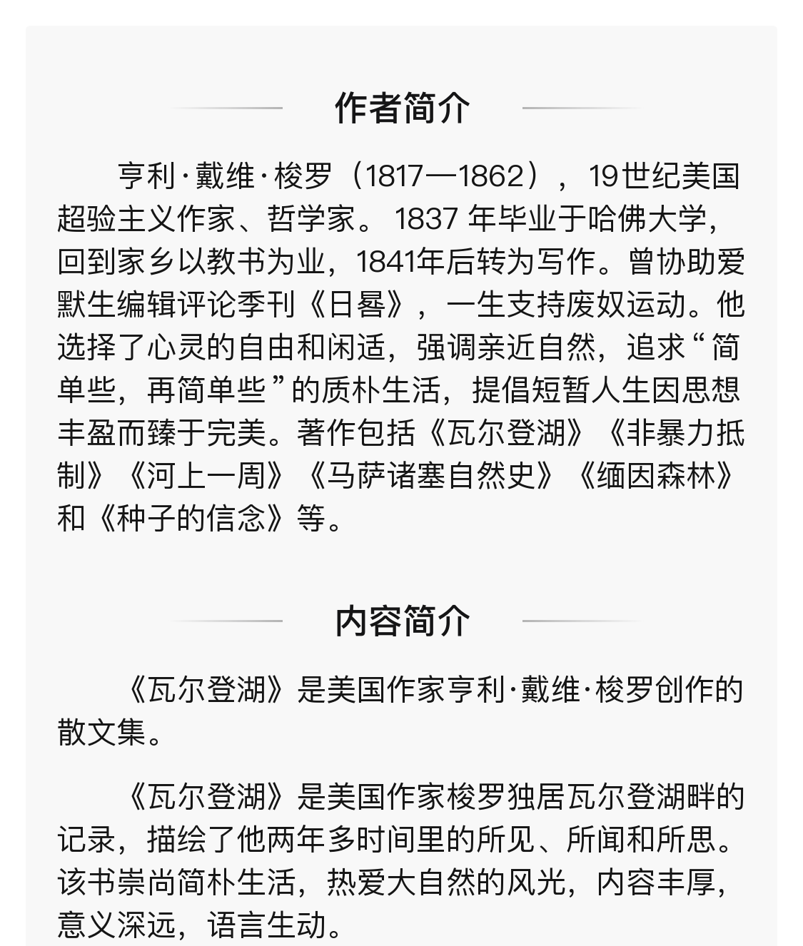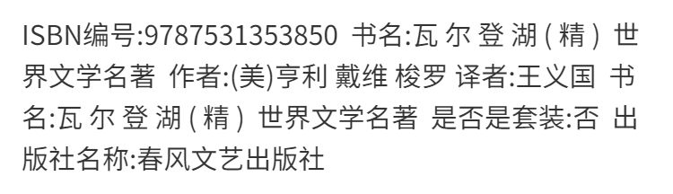 《瓦尔登湖》 精装正版 中小学课外阅读名著 插图珍藏版全译本