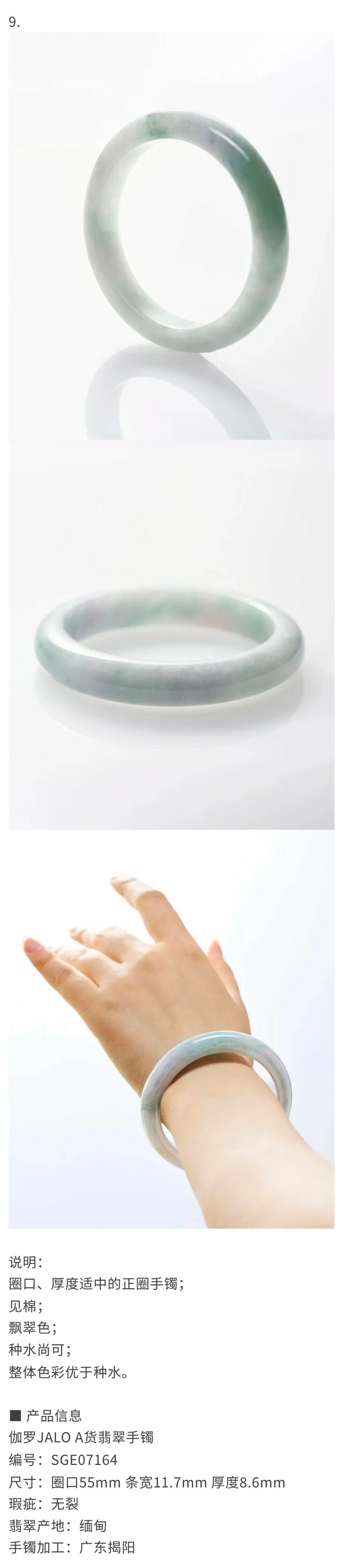 伽罗JALO A货翡翠手镯SGE07164