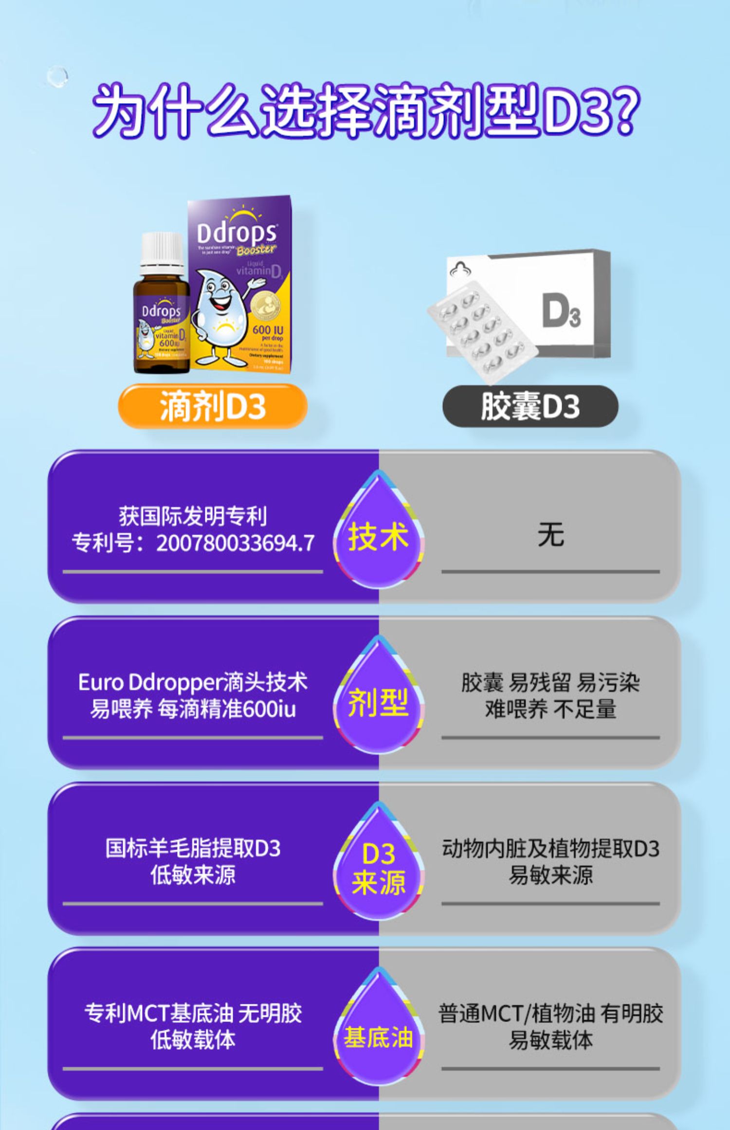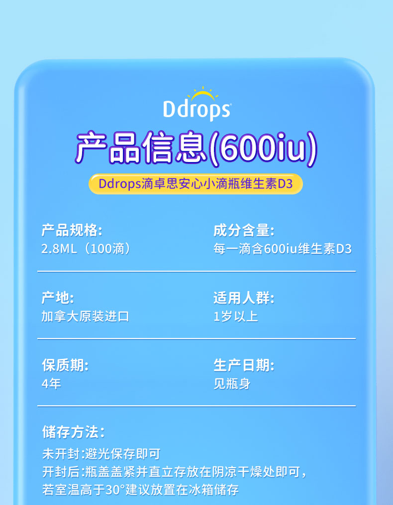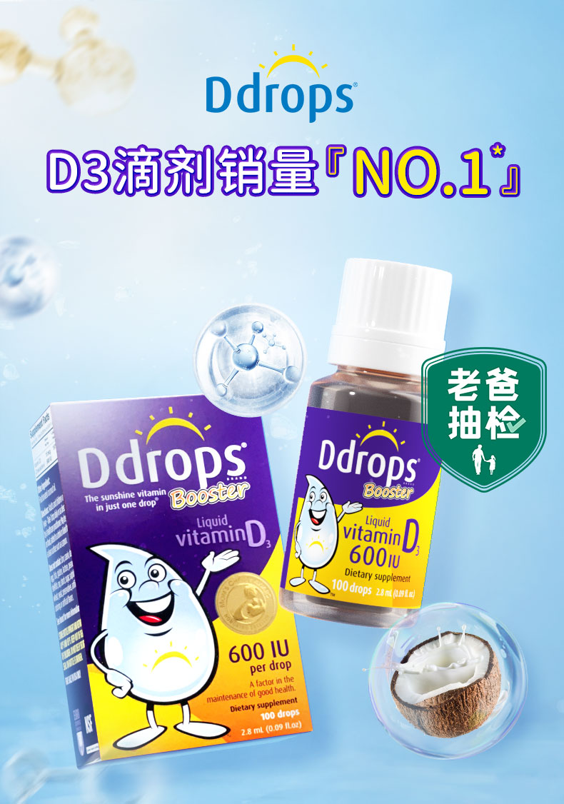 Ddrops滴卓思VD3儿童维生素d3滴剂 600IU促钙吸收 1岁以上