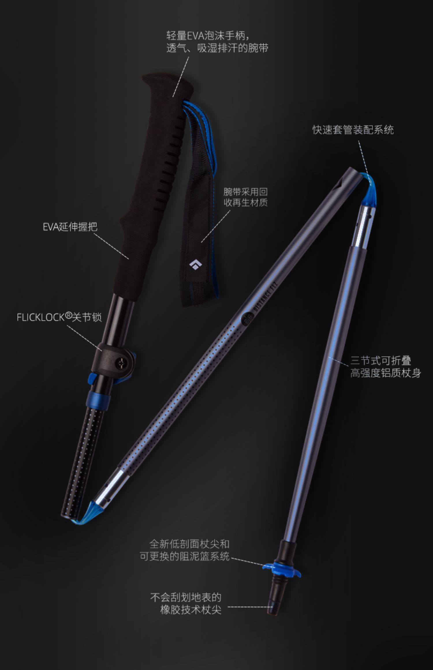 BD BlackDiamond 户外登山杖可调节折叠手杖徒步杖铝合金112533