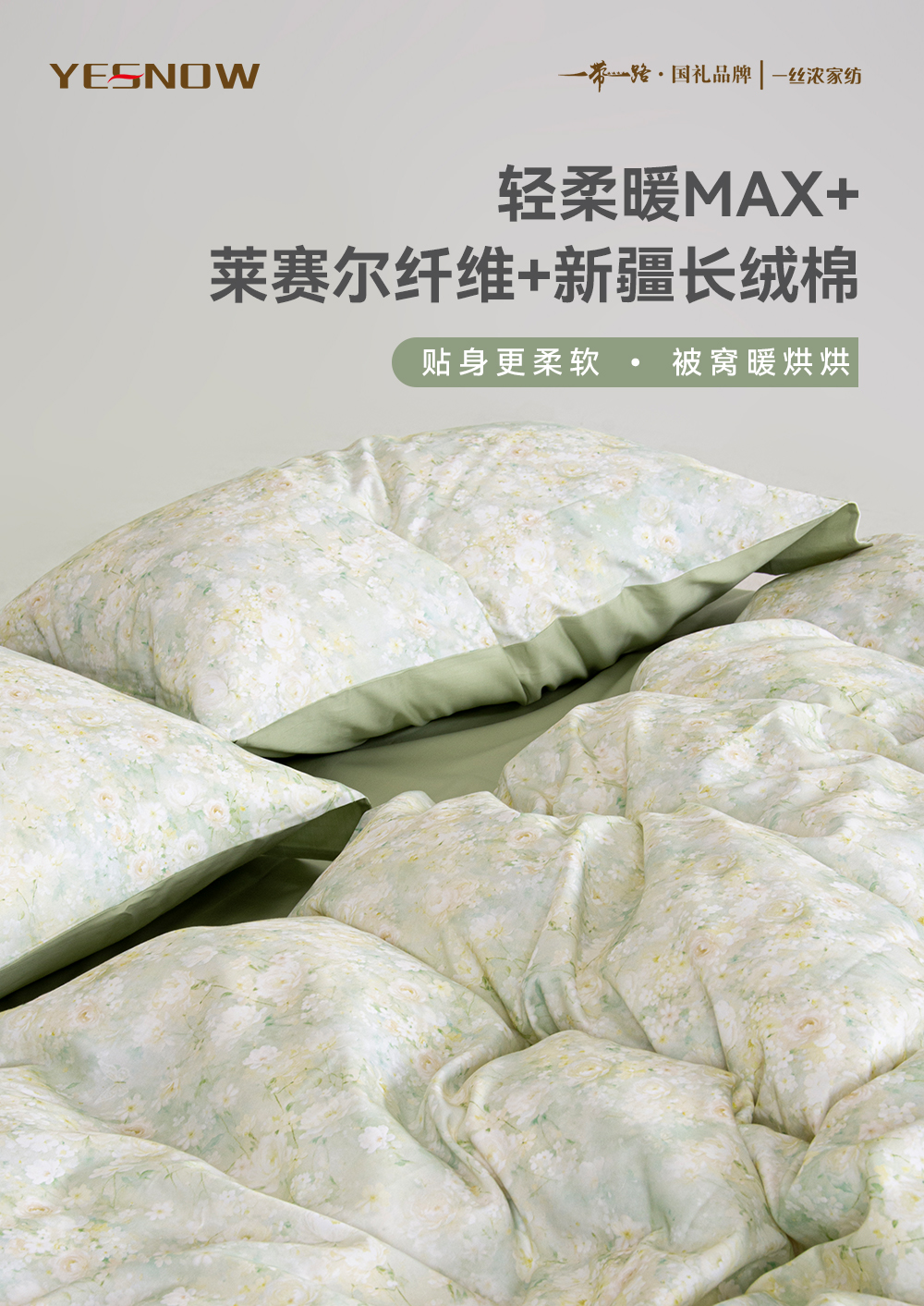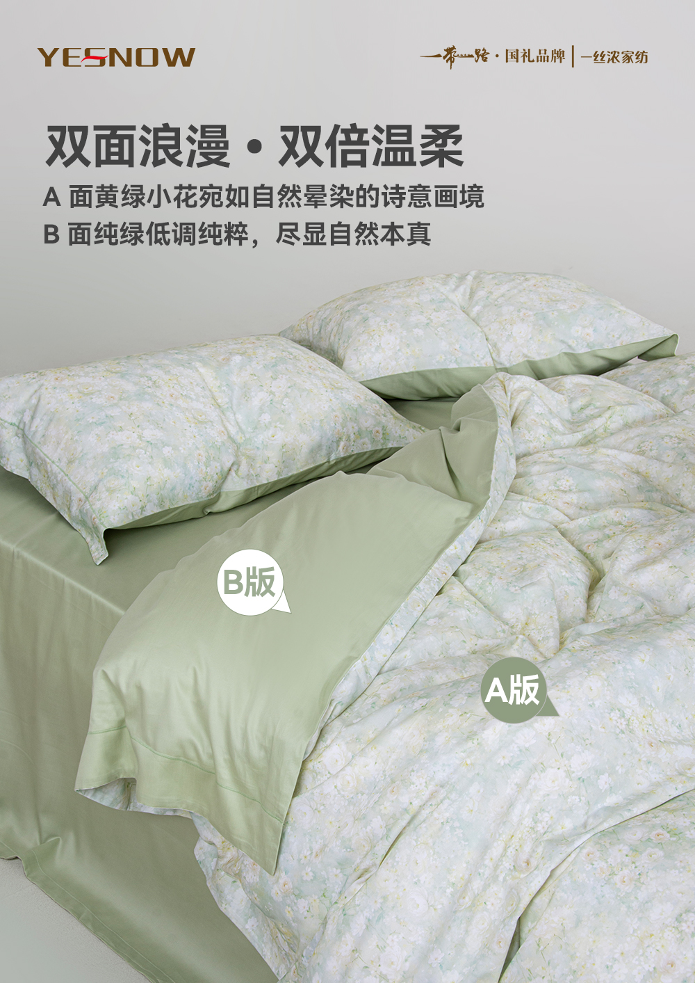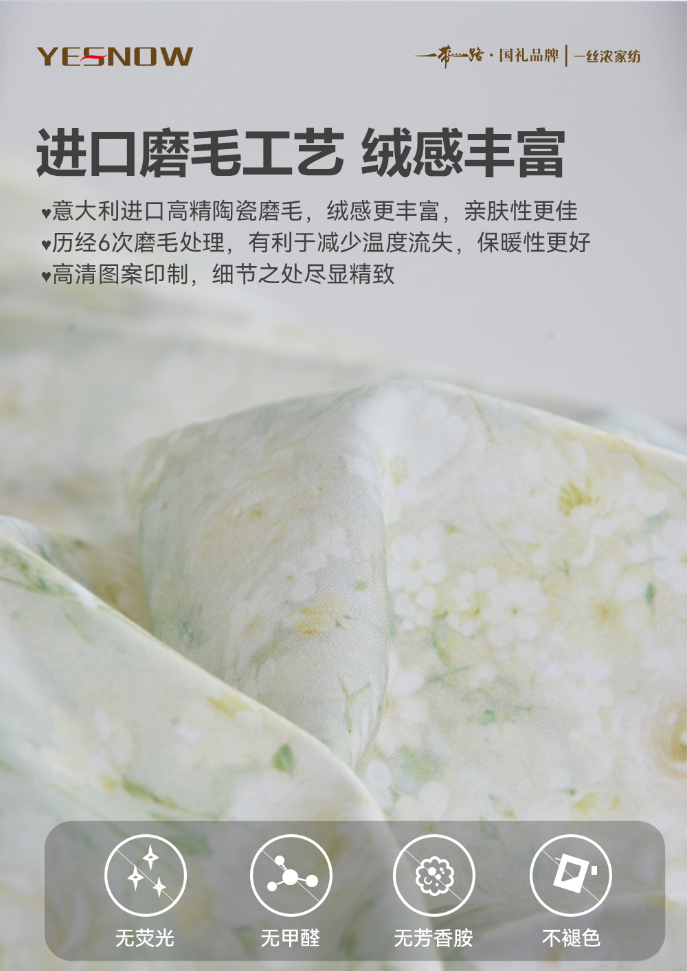 云丝锦暖绒数码四件套-逅花园-黄绿/抗菌