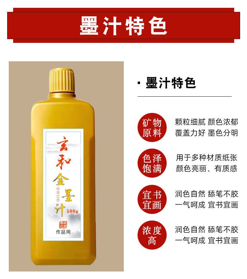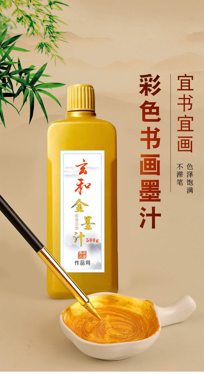毛笔金色墨水光亮浓缩无气味不掉色抄经小楷书法对联春年金色墨汁