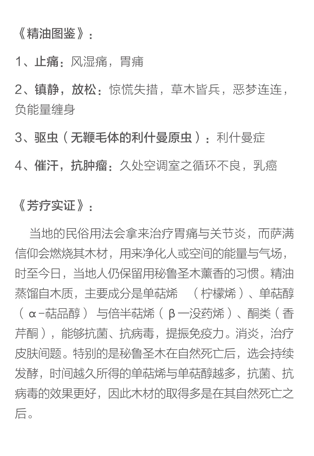 圣木精油是非常好的冥想精油,主要是推荐用来香薰,真的是非常非常非常好闻,是闻到就绝对忘不掉的味道,而且很是中性,男生也可以滴在衣领或下摆作为香水,当然更好的方式是滴在樱桃木球球上,扩香会更好!在家的话,可以用香薰球或香薰机,可以让整个家都变得神圣起来,并能帮助思想聚集,和乳香一起用更佳,尤其是家中宝宝学习上注意力不佳,也可以试试哦!太好闻了,我一万分推荐!