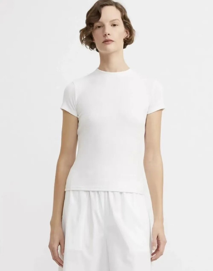 The**ory圆领螺纹短袖T恤,纯原,持续在线的标志性基础款,稳定的版型与质感,在职业女性的日常穿搭中拥有扎实的口碑。