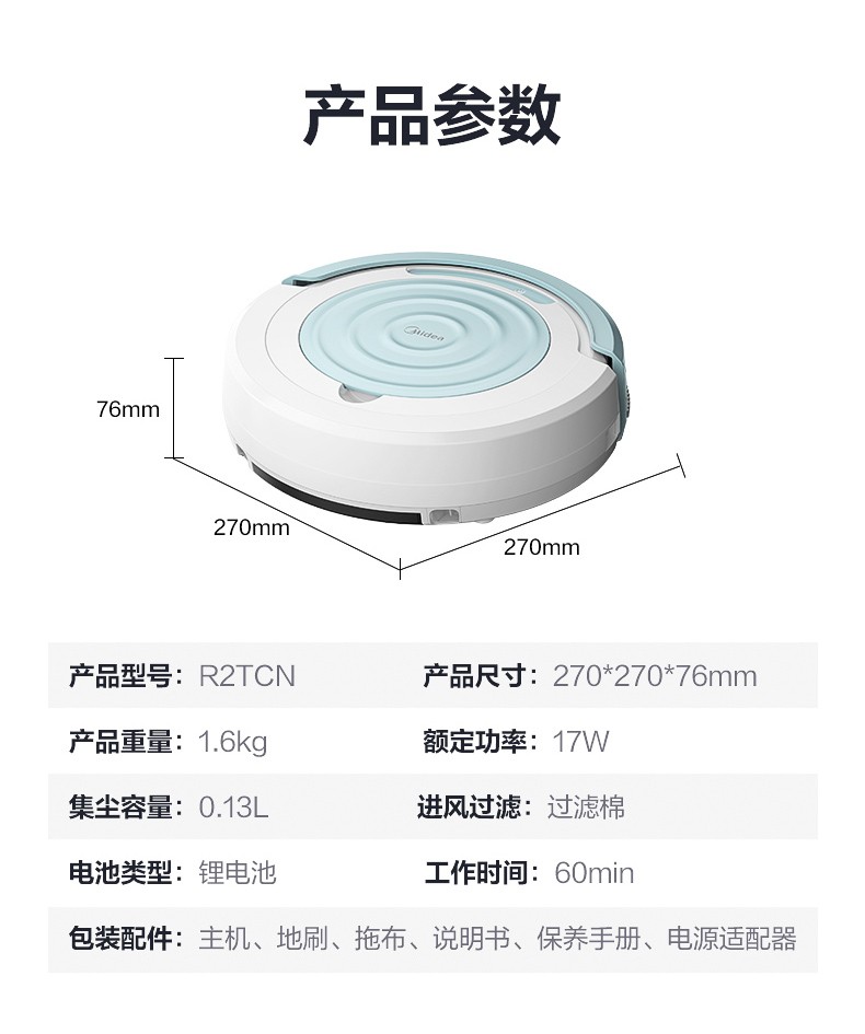 美的(Midea)扫地机器人R2TCN 扫拖一体机 环境感应 真空吸口 4种清扫模式