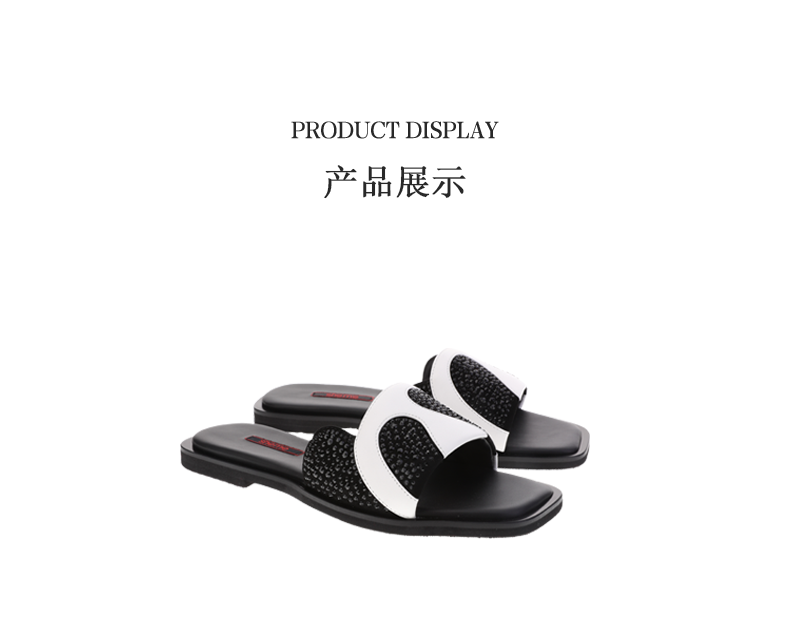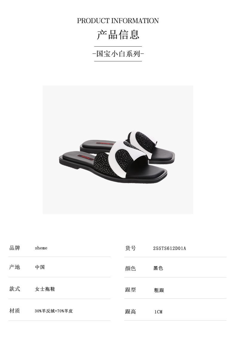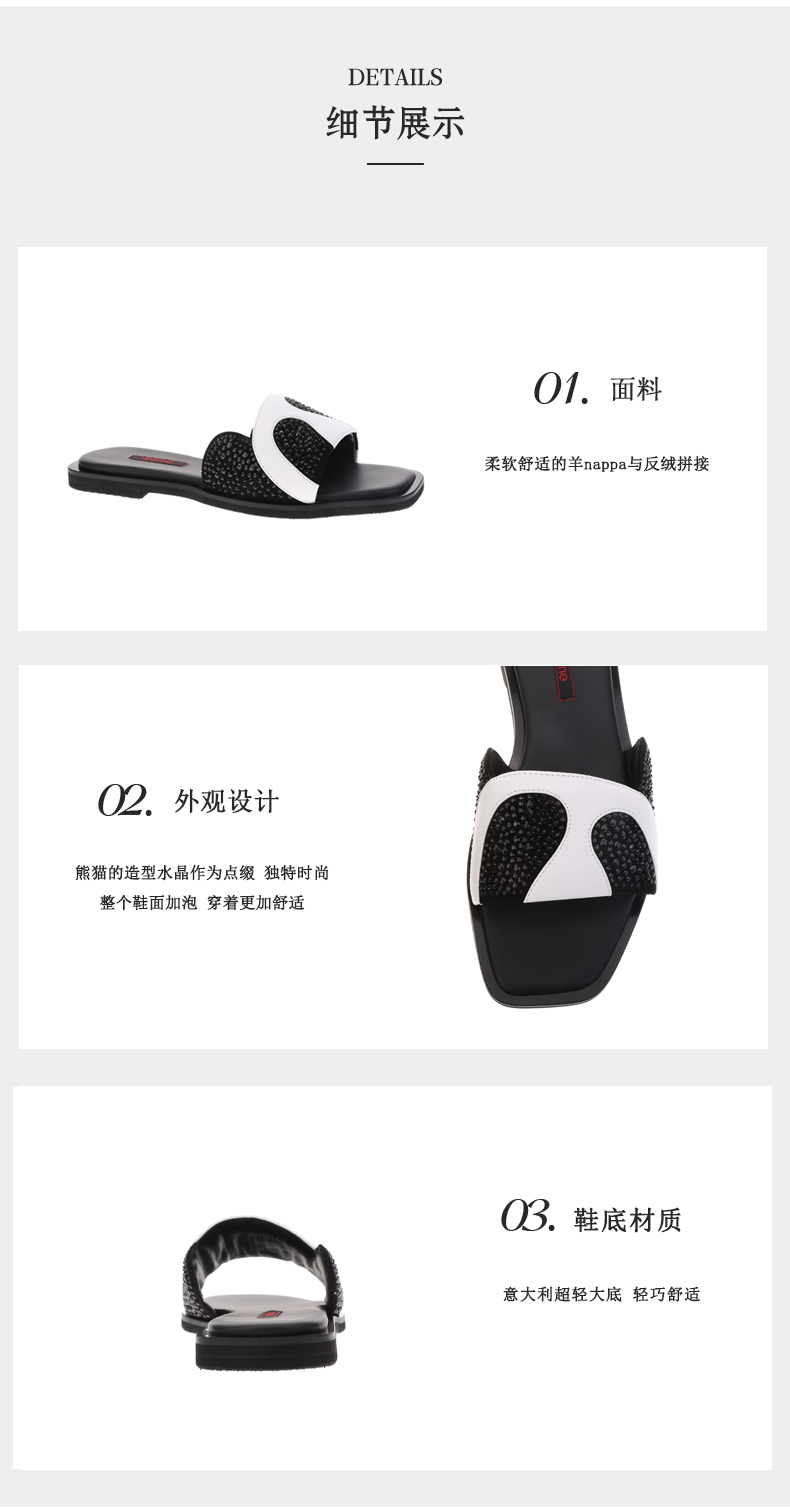 sheme国宝小白系列水晶熊猫皮料拼接独特可爱女士拖鞋可定制