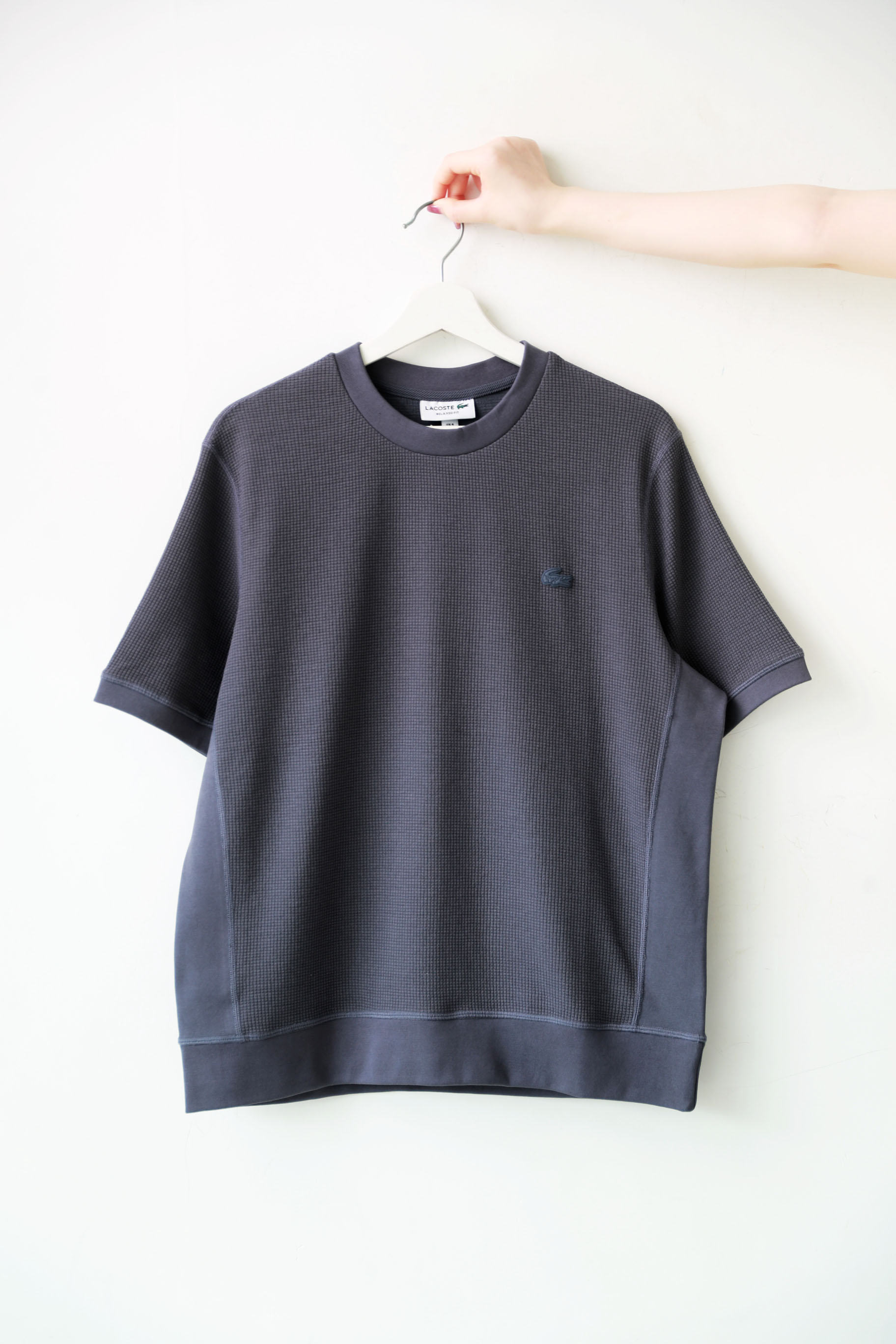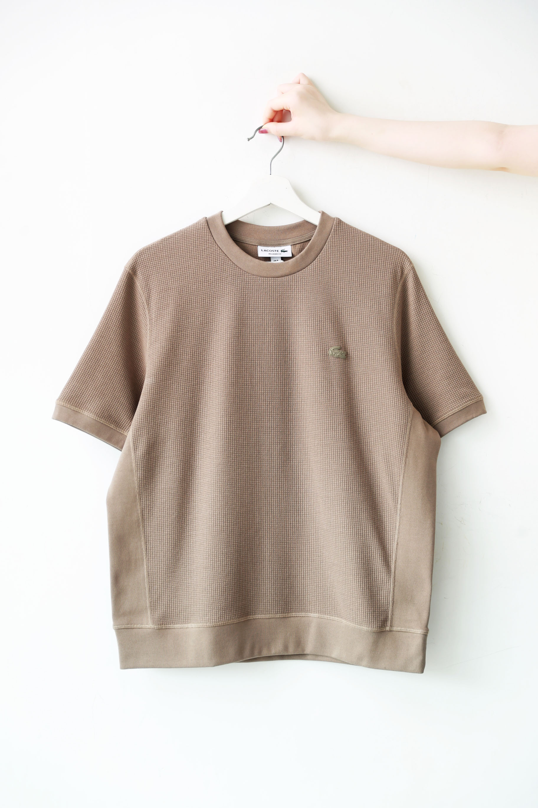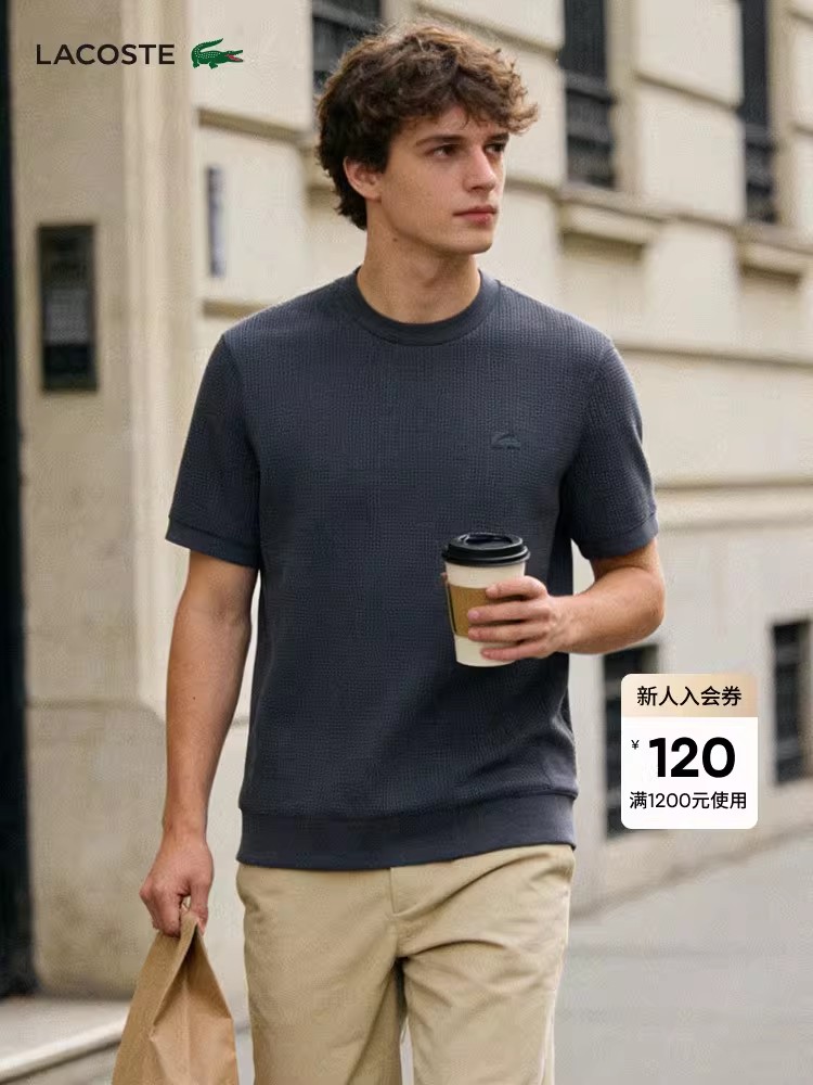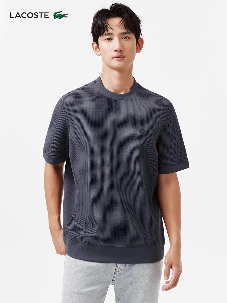 华夫格圆领tee,松弛感半袖儿。罗纹锁边双股明线衍缝t恤E041188