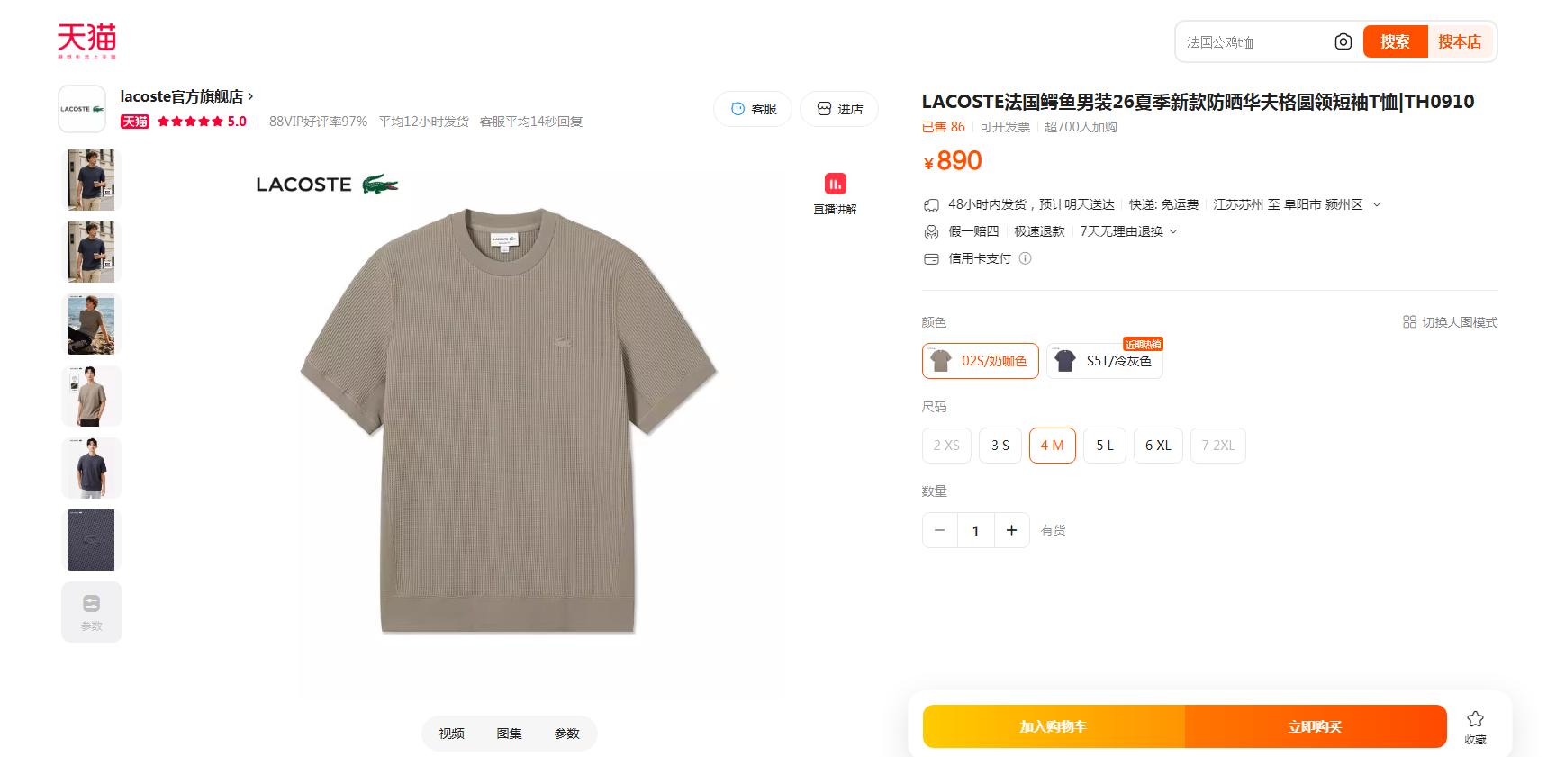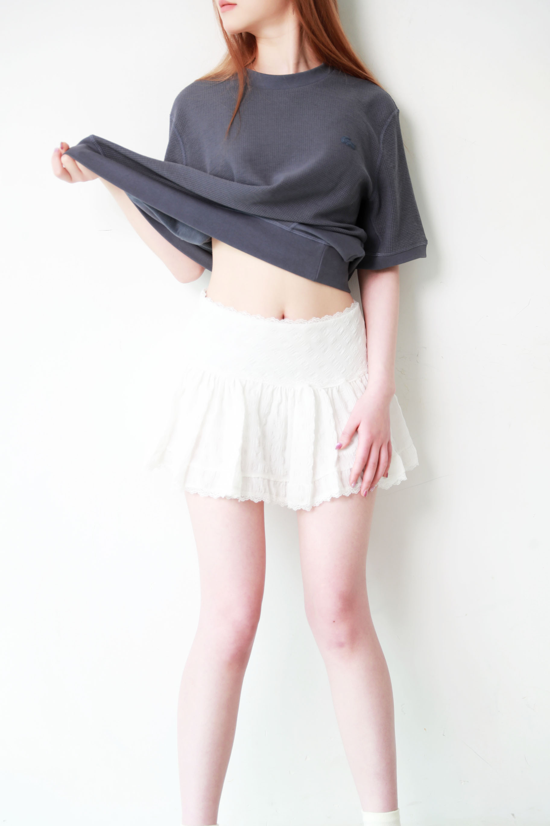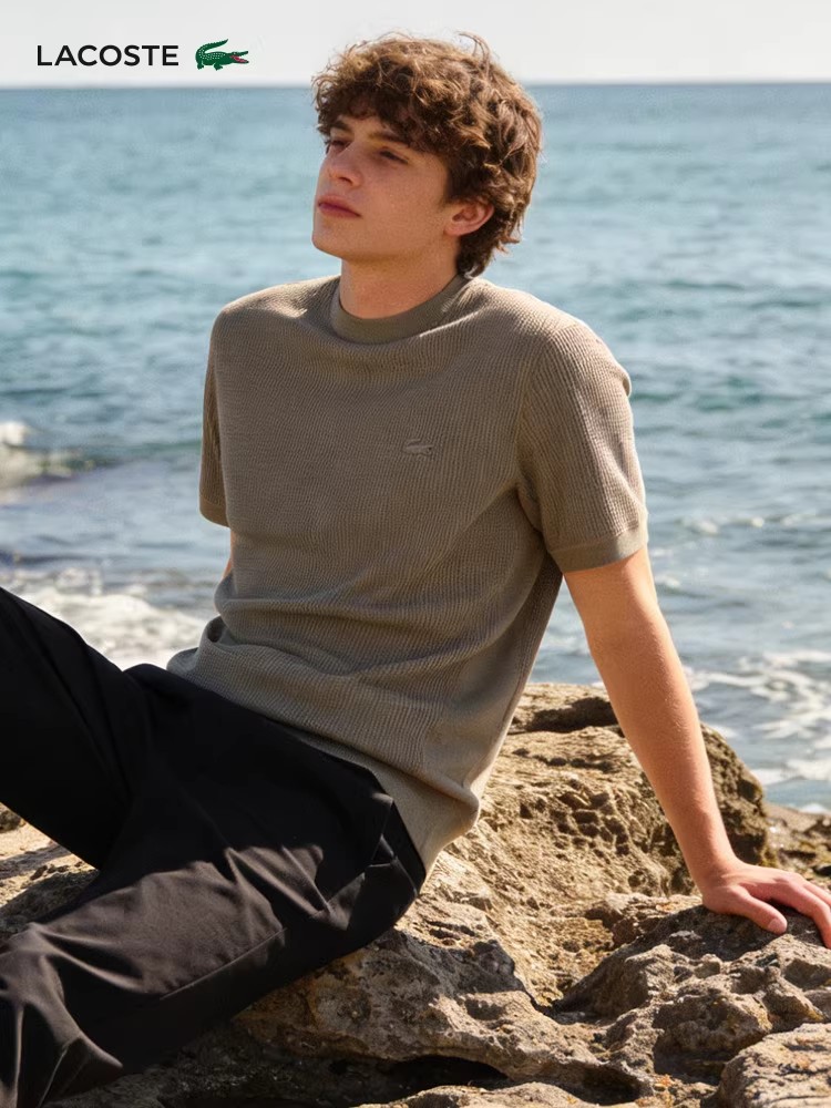 华夫格圆领tee,松弛感半袖儿。罗纹锁边双股明线衍缝t恤E041188
