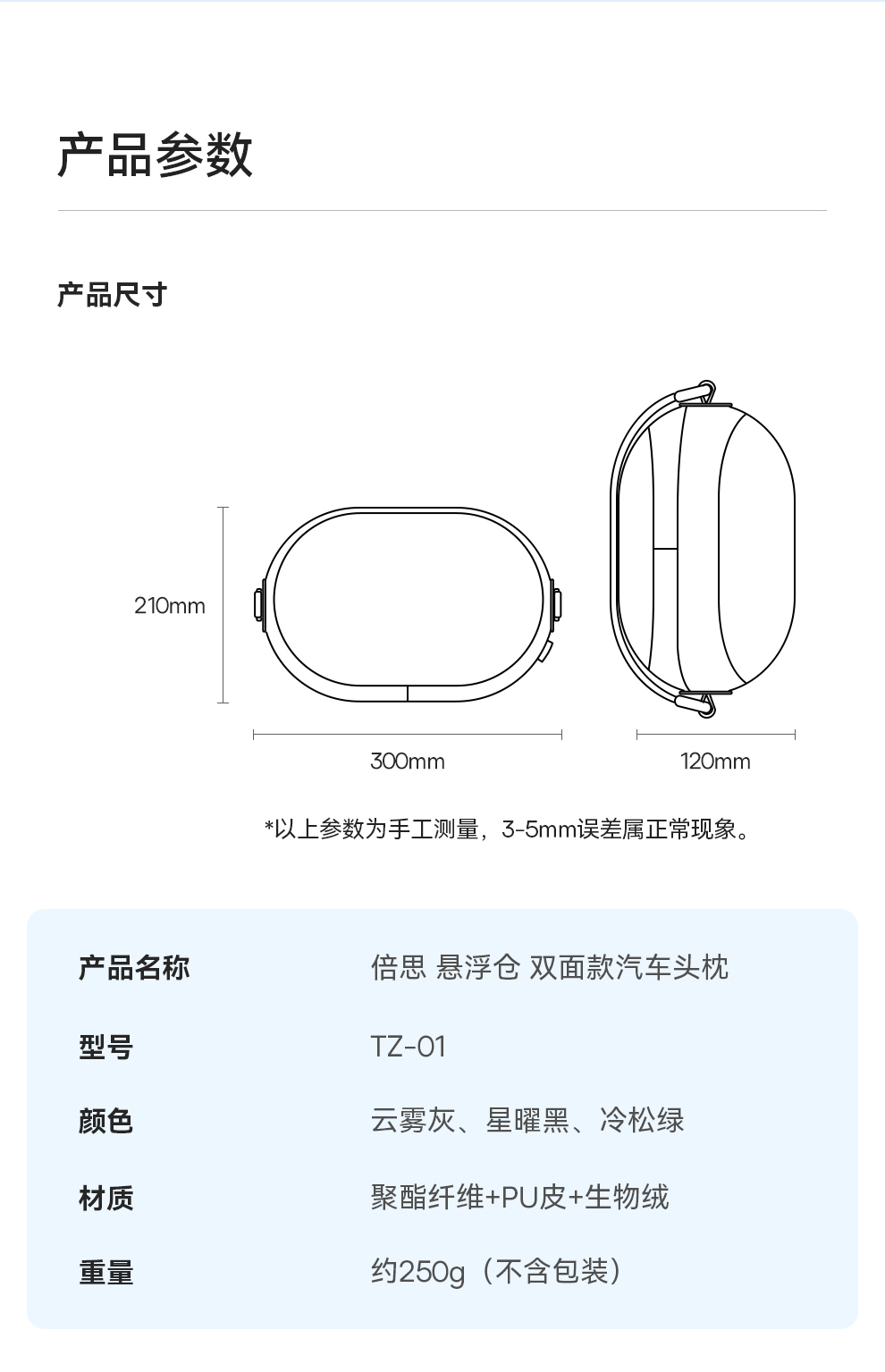 【十一专享】倍思 悬浮仓 双面款汽车头枕