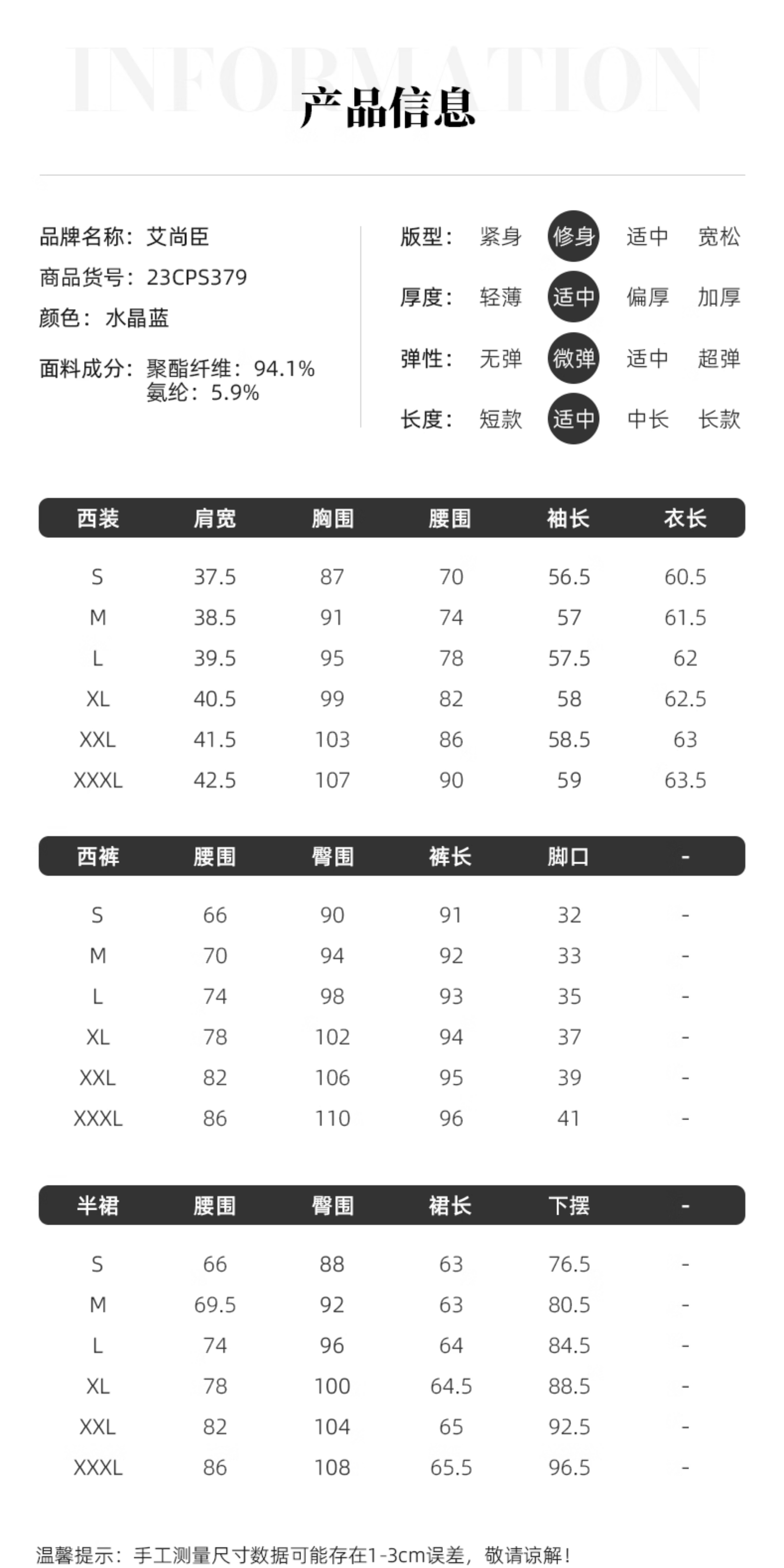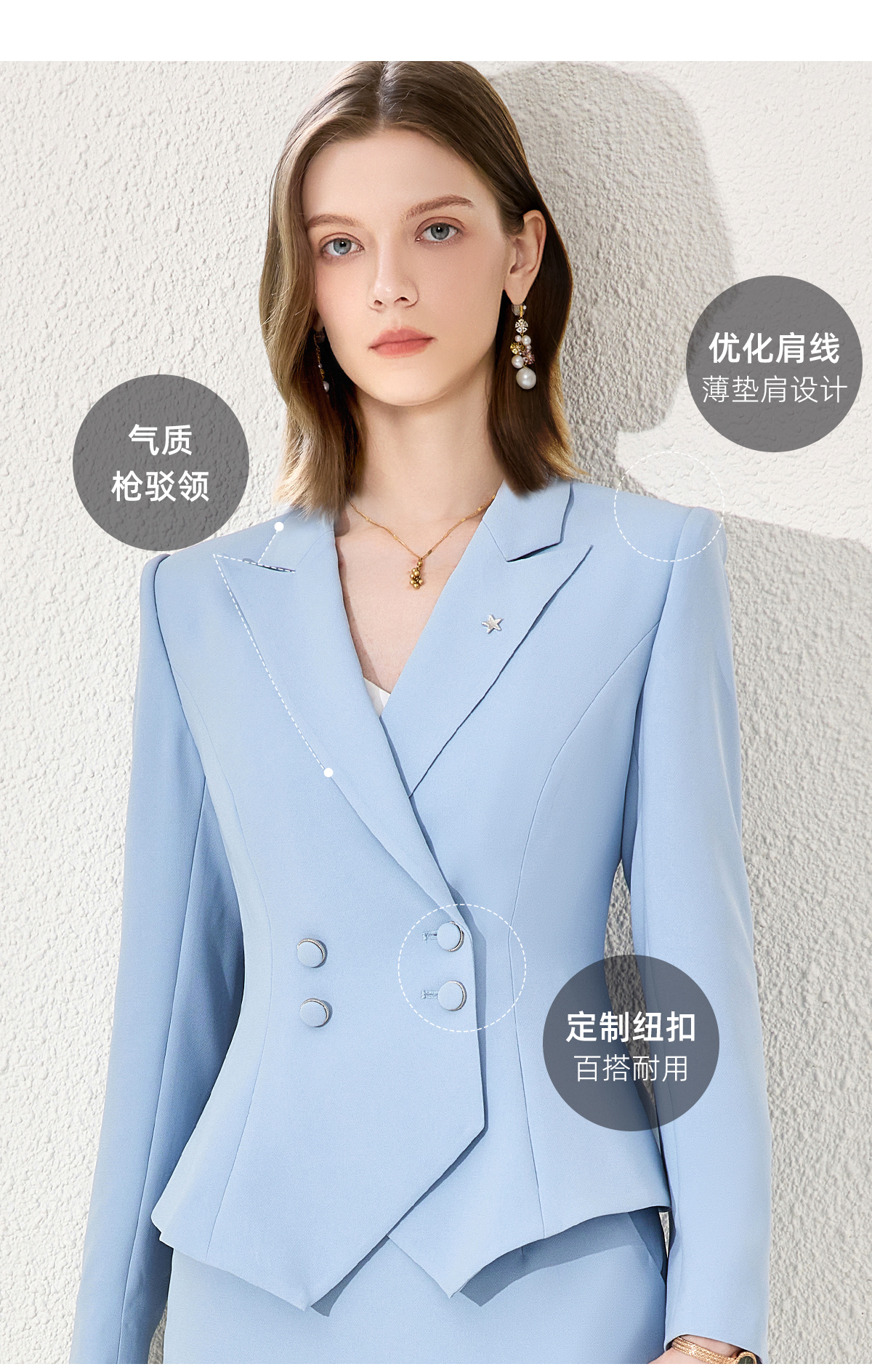 艾尚臣蓝色西装套装裙女秋季新款女神范职业装高级感职场工作服