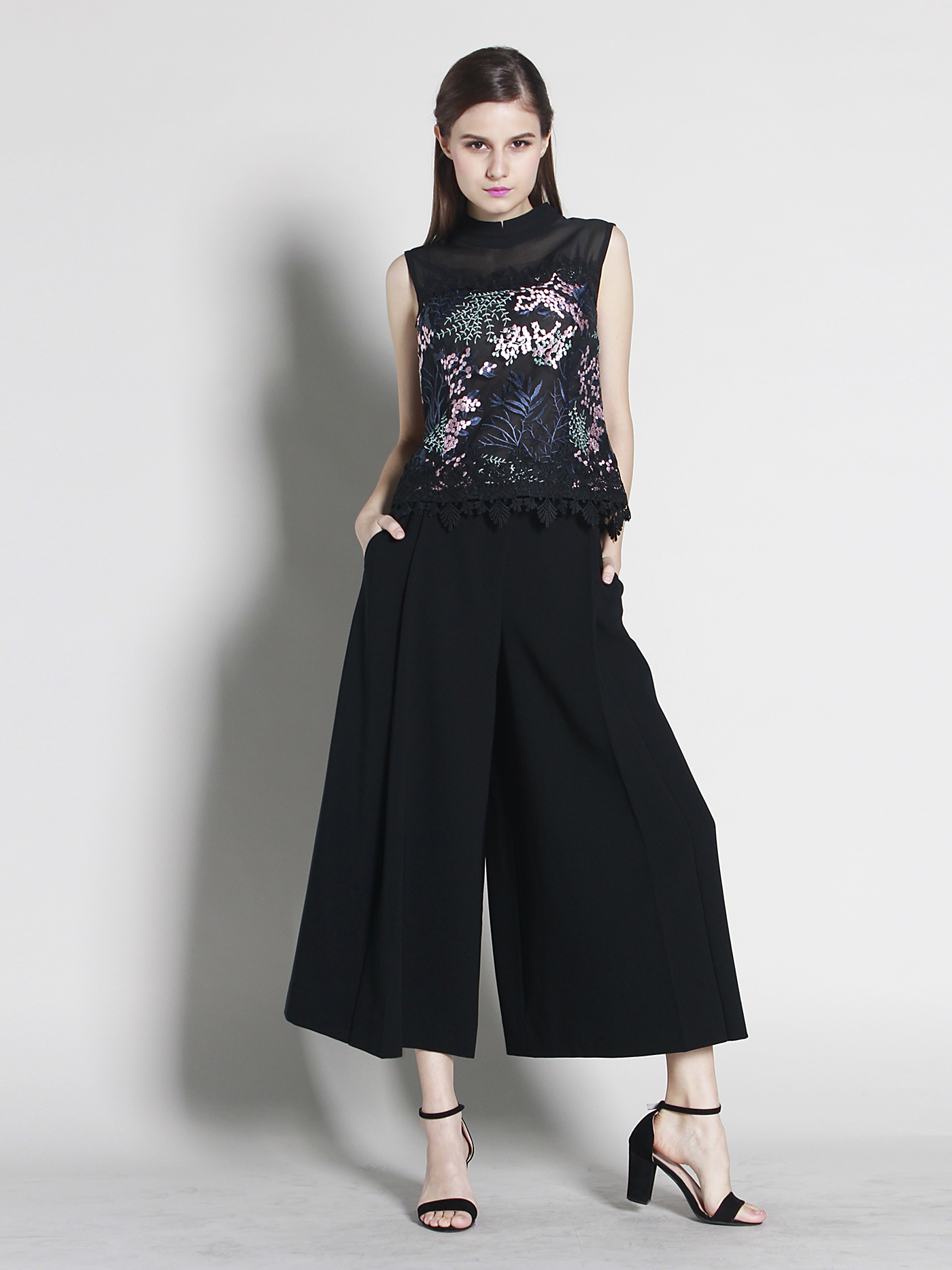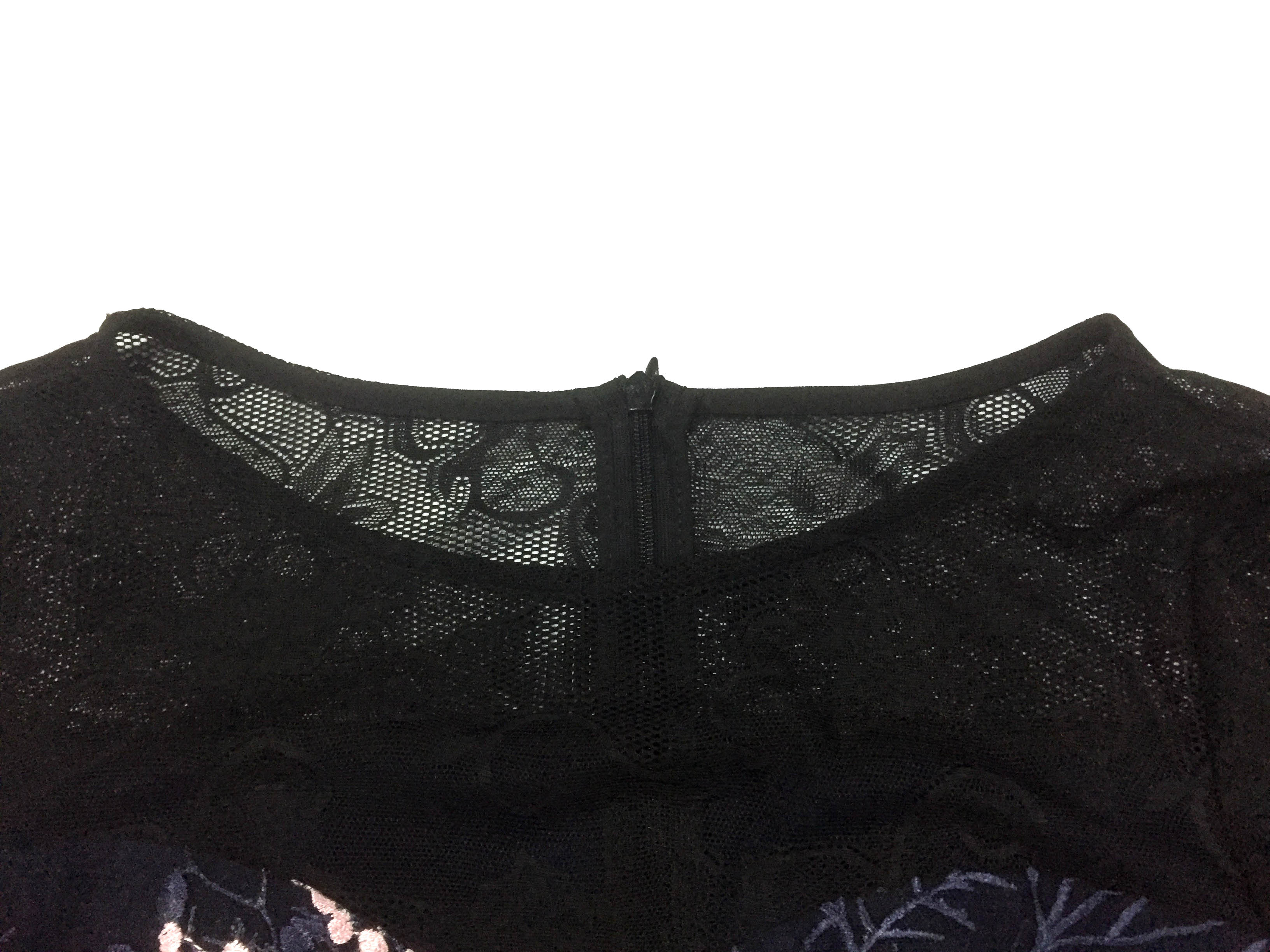HJ2T39_漆黑色_T恤_夏季_圆领短袖网纱透视蝴蝶刺绣口袋显瘦百搭通勤上衣_高级女装_BERNIEELEN 伯妮斯茵