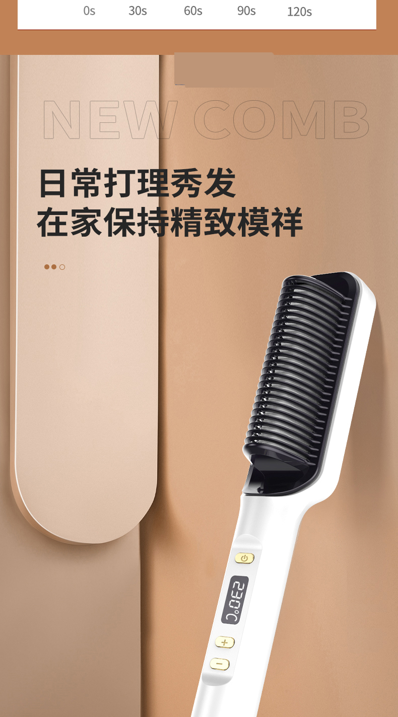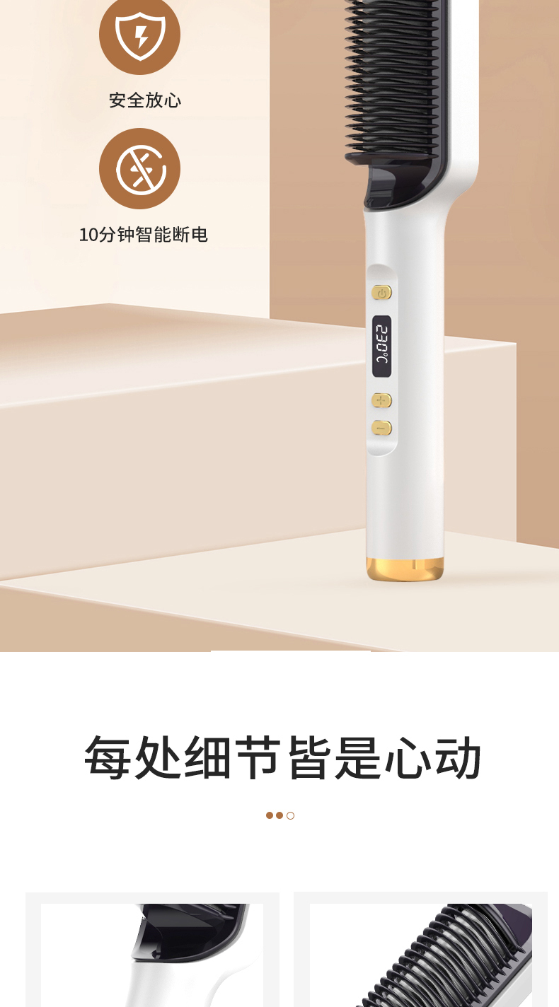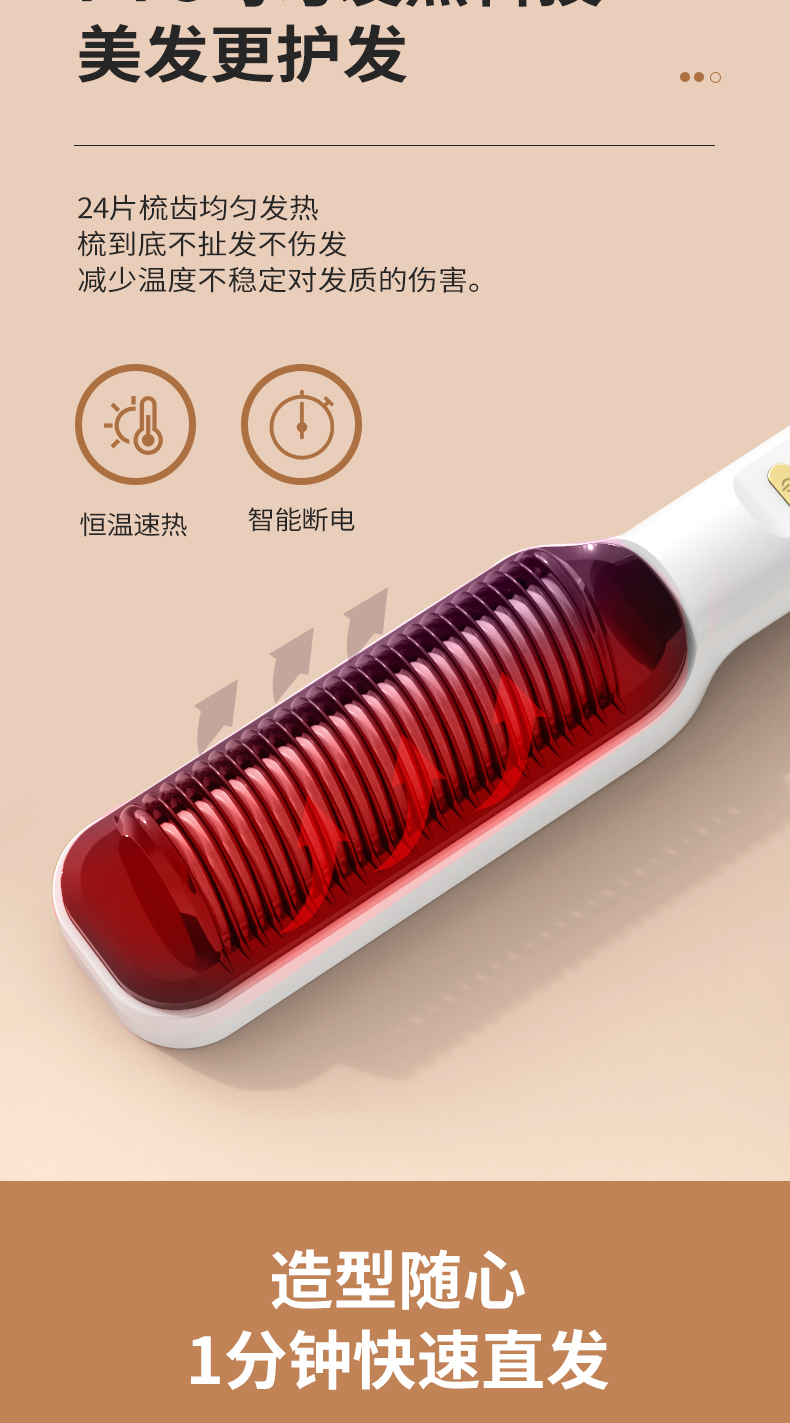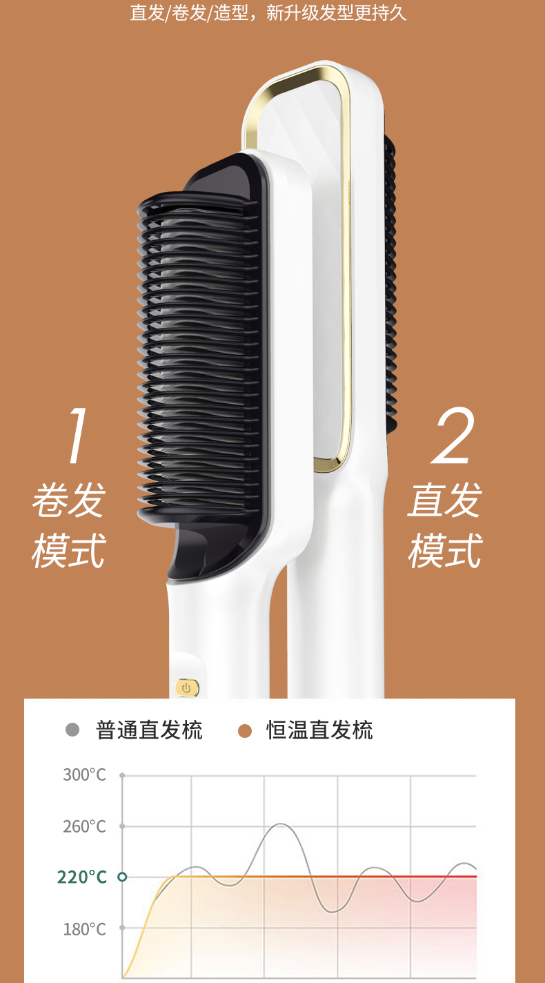 【高颜值直发梳 一梳即顺】HYUNDAI液晶直发梳 恒温速热造型 快速直毛躁发丝 80-230℃可调 直卷两用 防烫梳齿 智能断电 轻盈便携XD-888