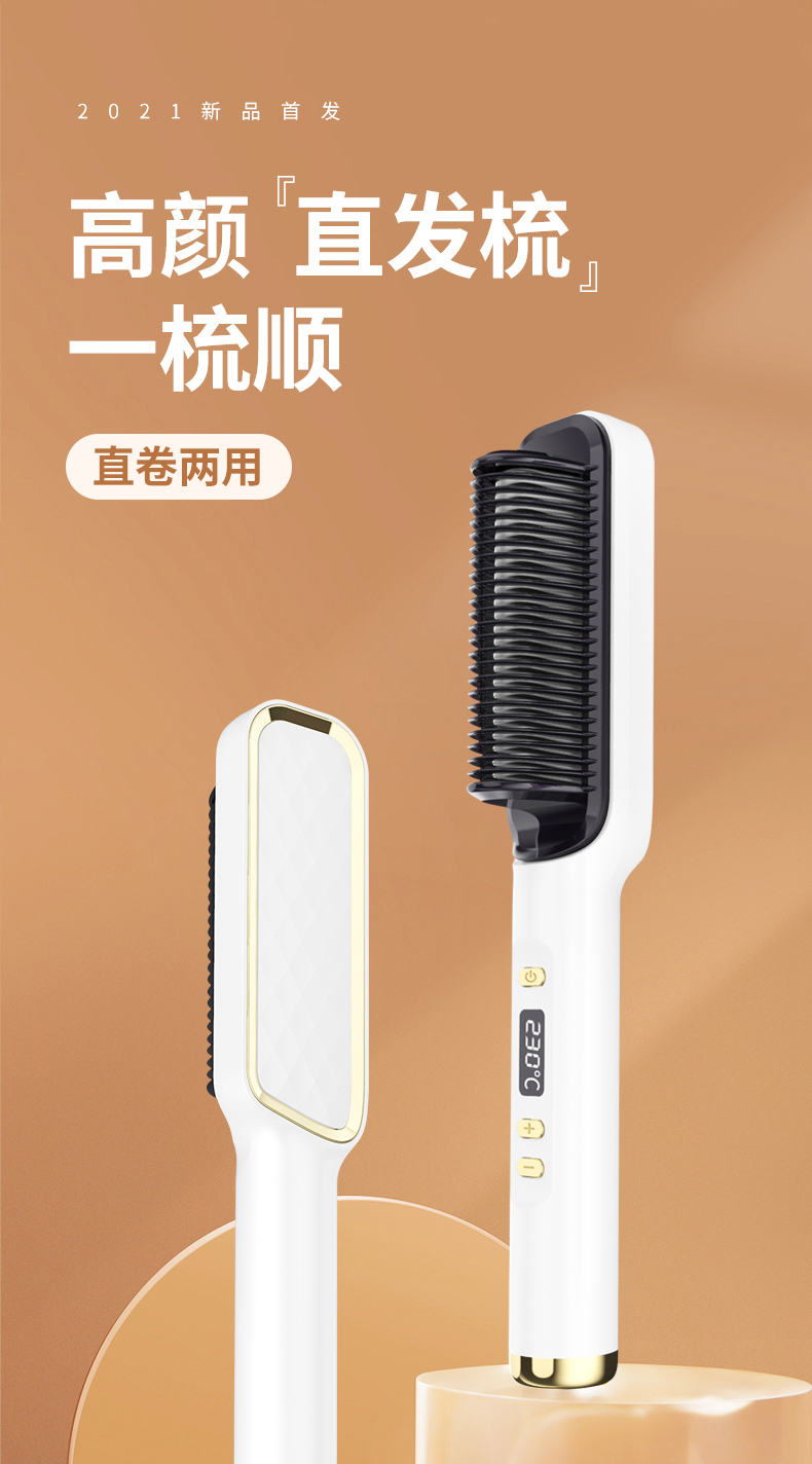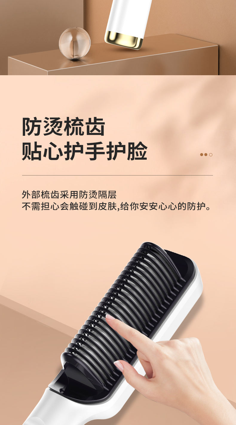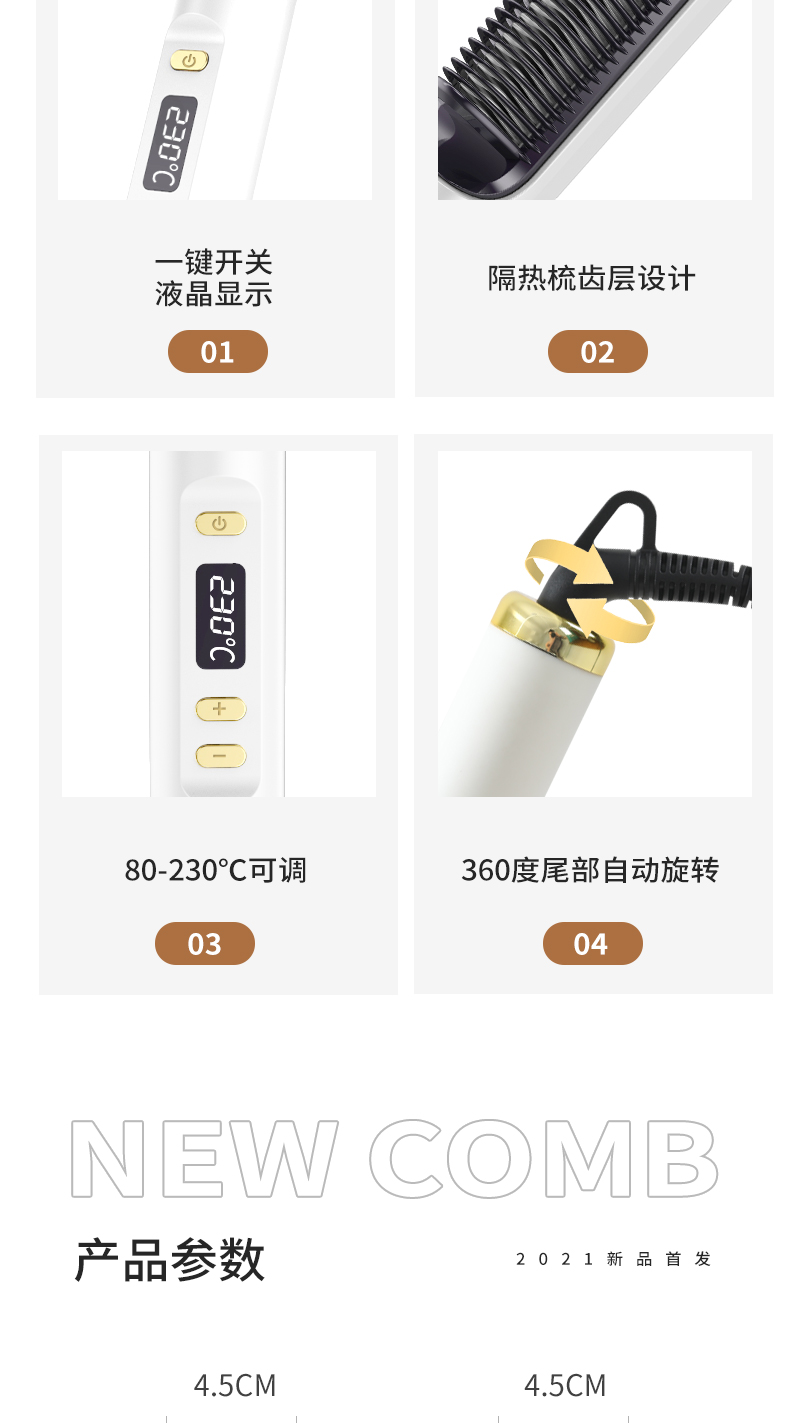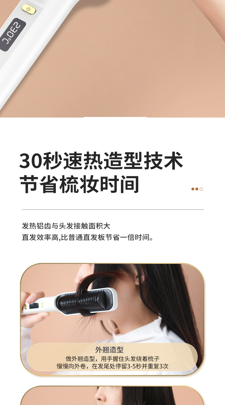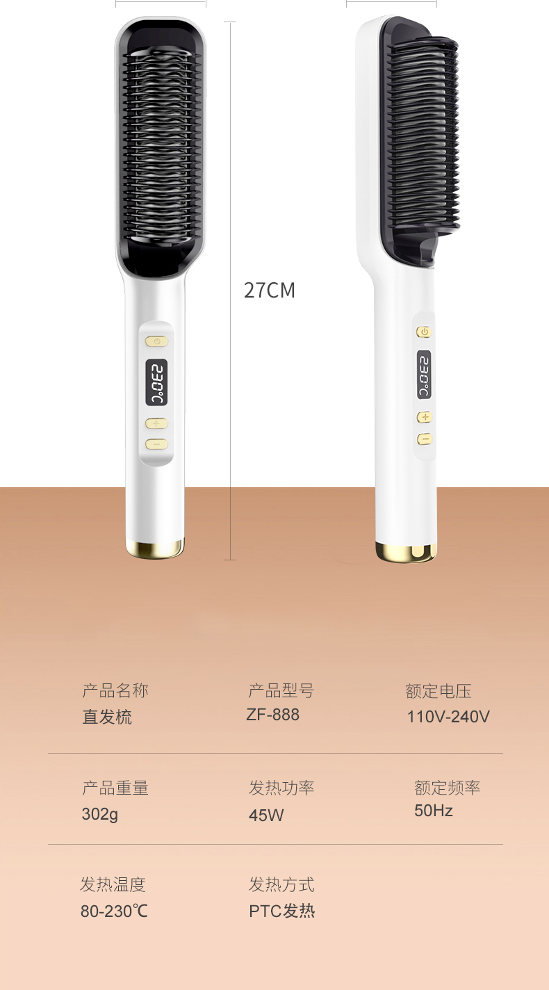 【高颜值直发梳 一梳即顺】HYUNDAI液晶直发梳 恒温速热造型 快速直毛躁发丝 80-230℃可调 直卷两用 防烫梳齿 智能断电 轻盈便携XD-888