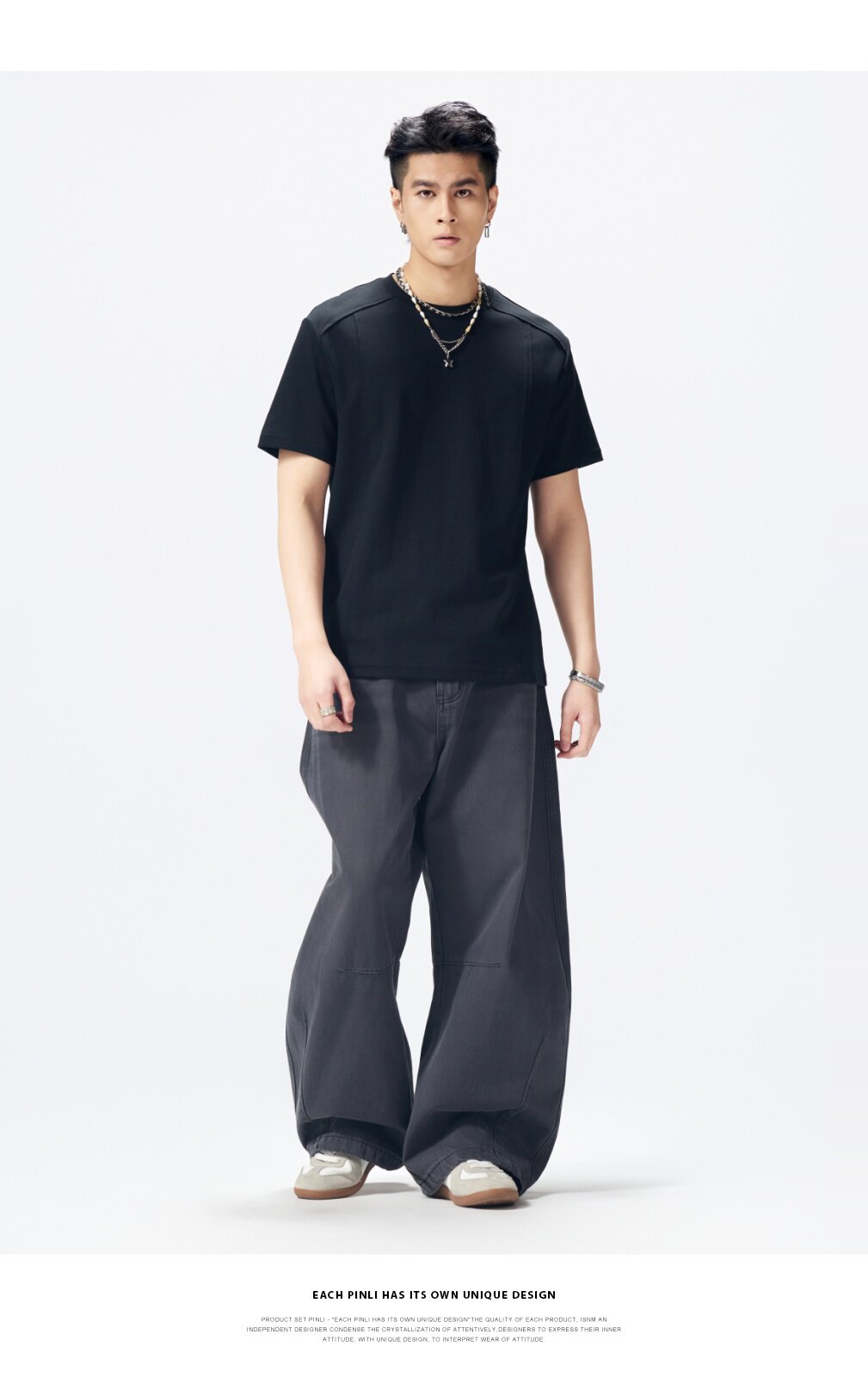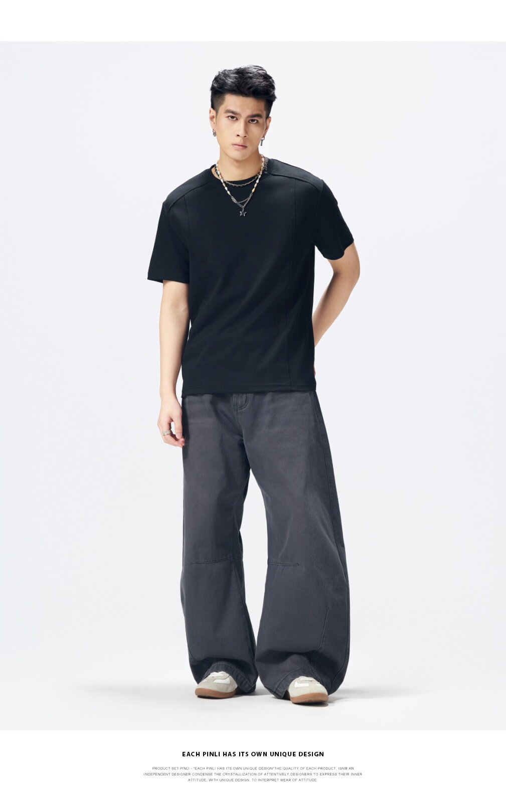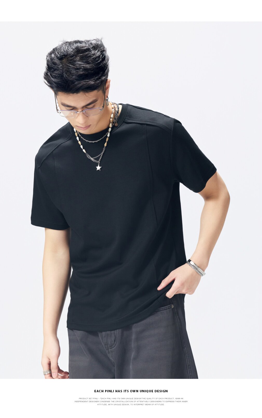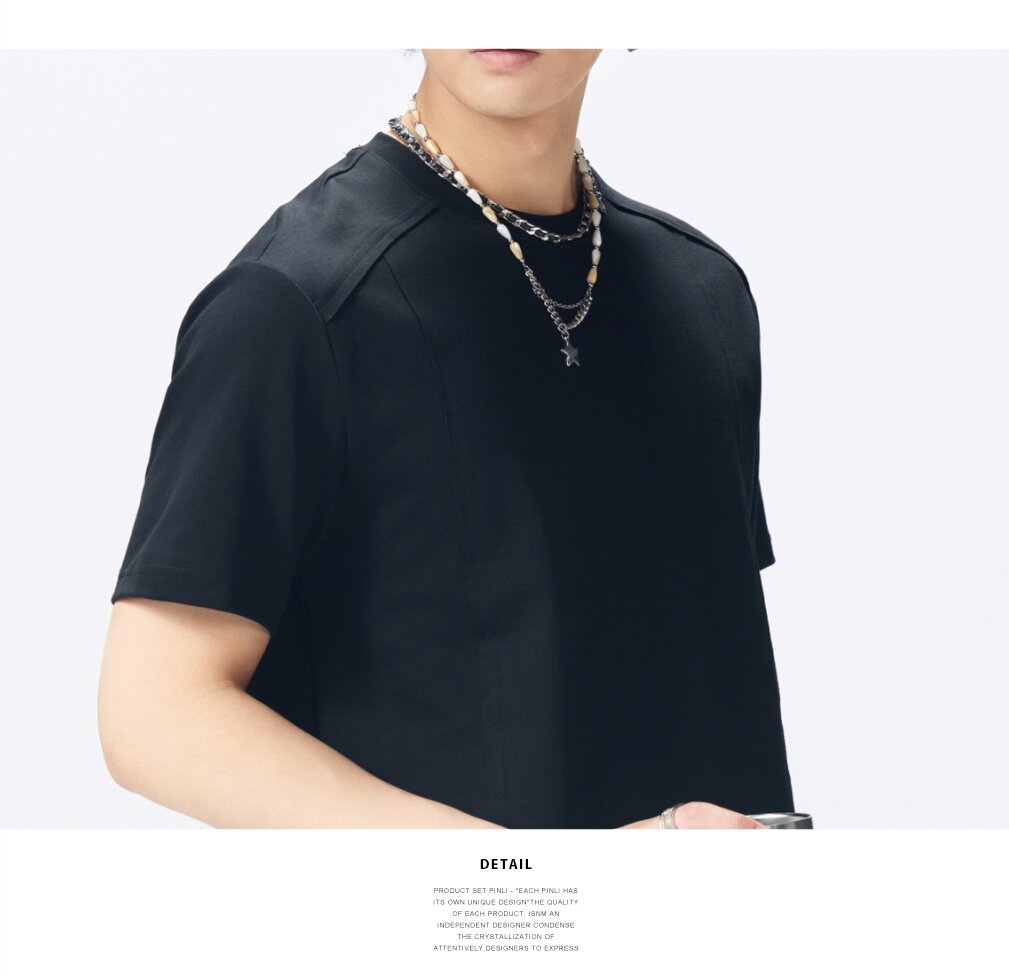 PINLI品立2026夏季新款青年圆领落肩袖纯色百搭短袖T恤上衣潮牌男GD262111042