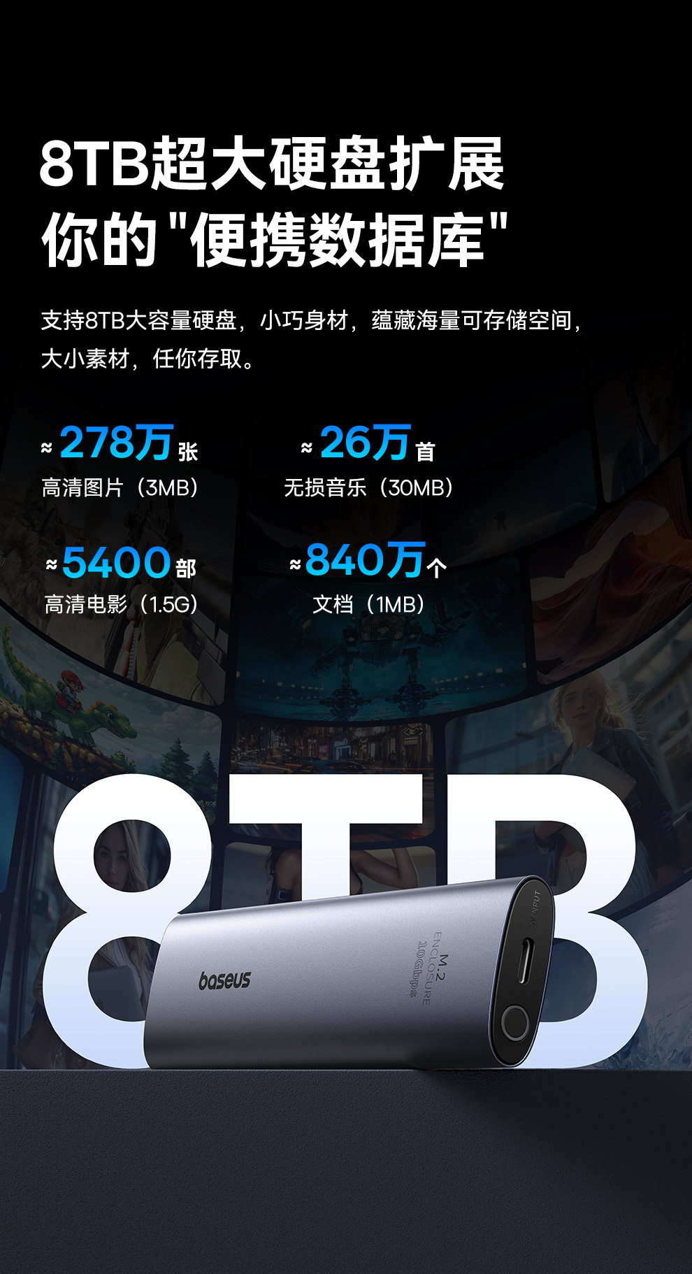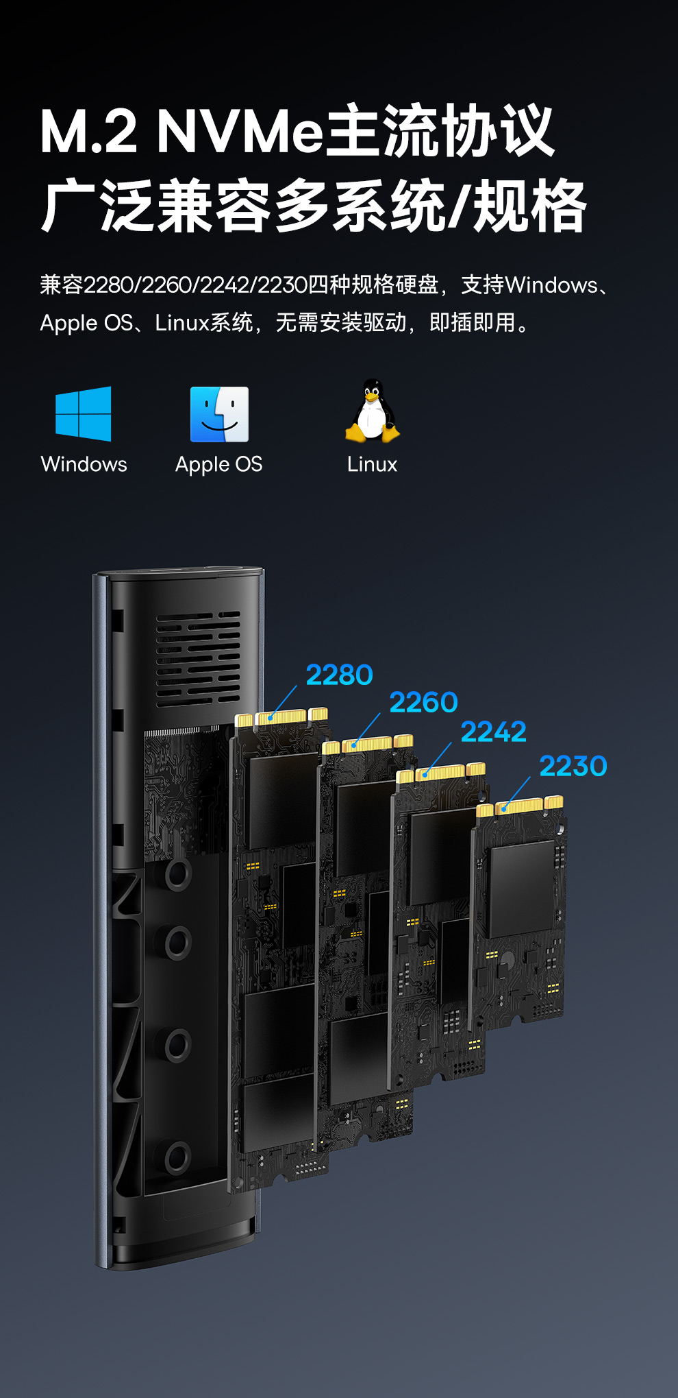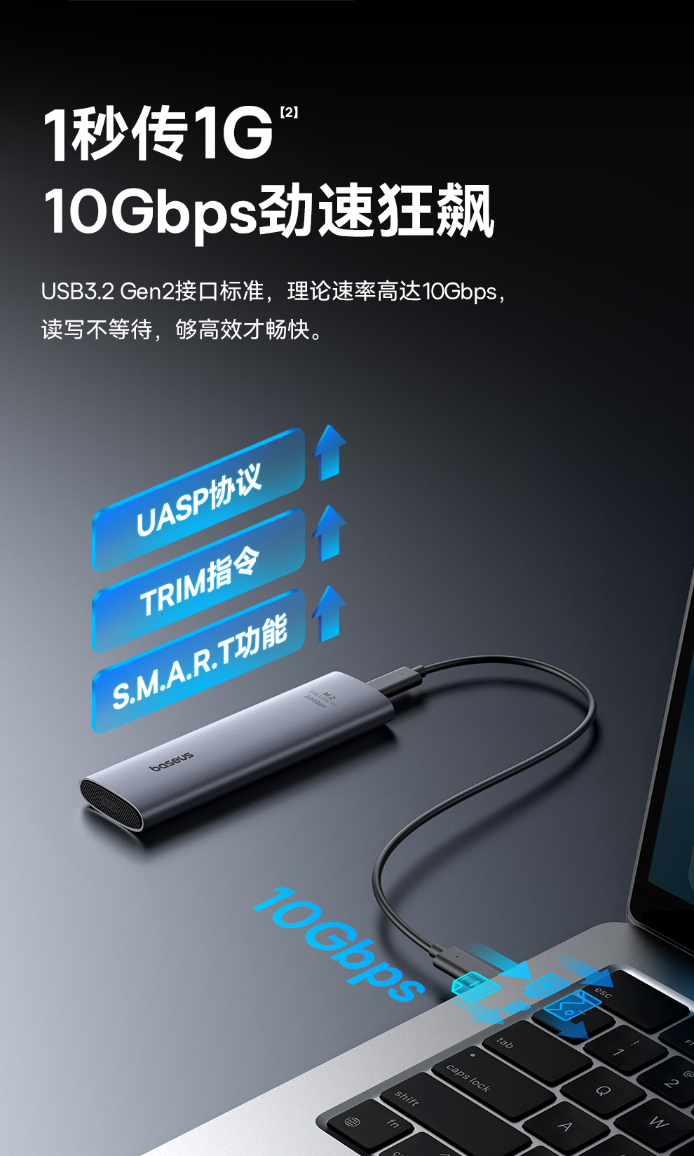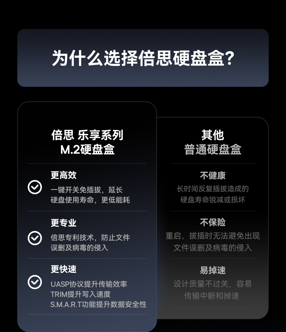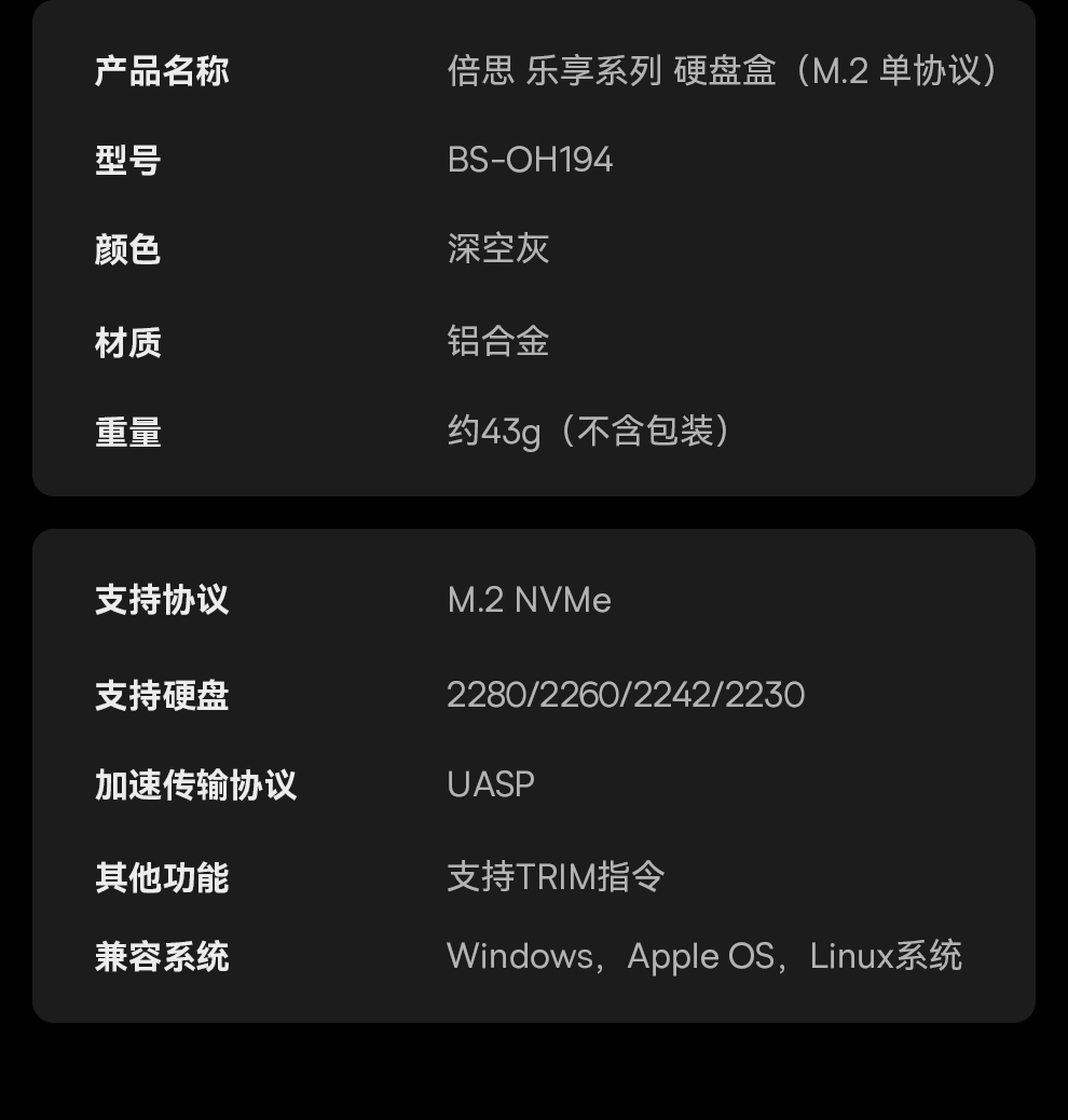 【十一专享】倍思 乐享系列 硬盘盒(M.2 单协议)