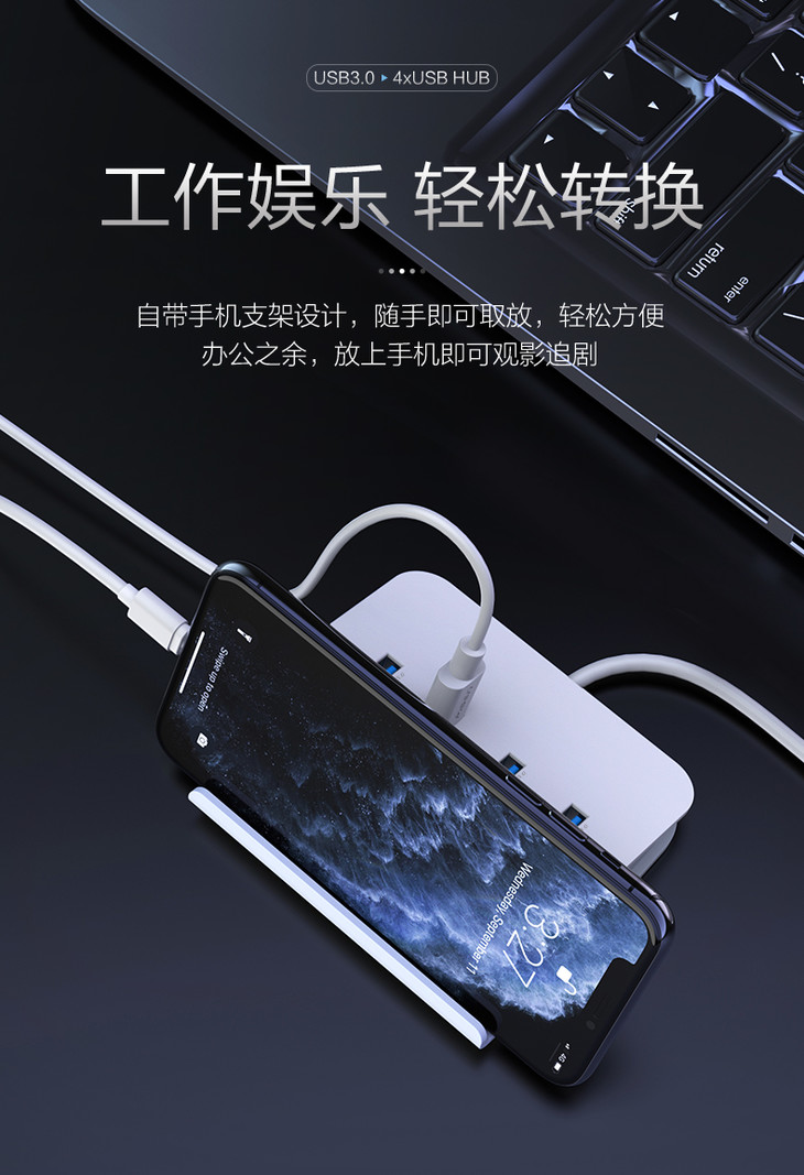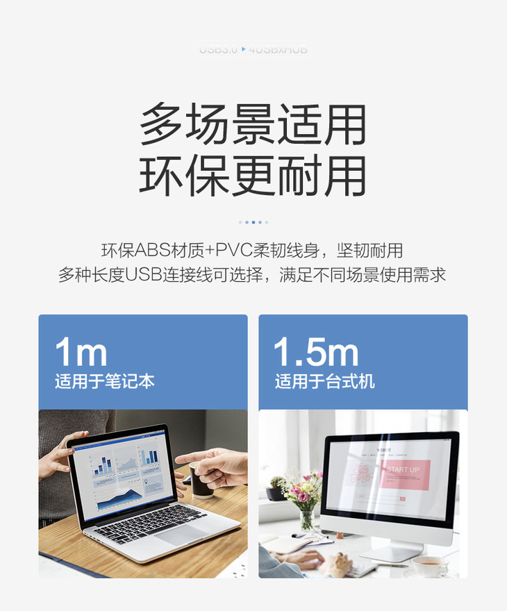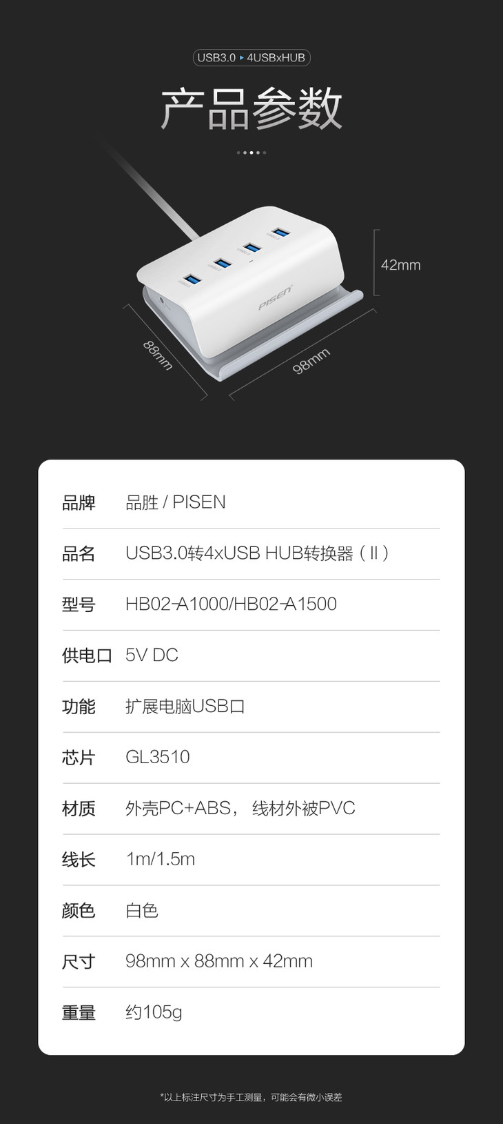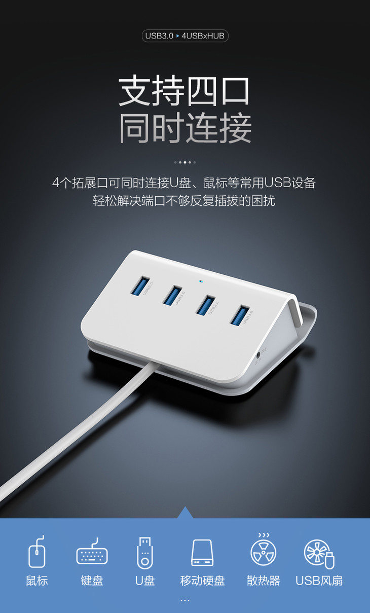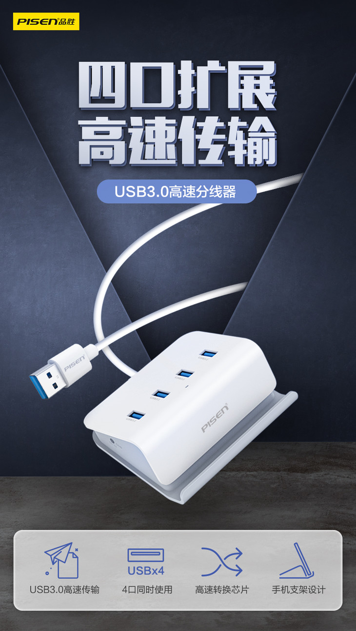 品胜 USB接口扩展坞USB3.0转4*USB HUB转换器多长度可选 一拖四笔记本转换器