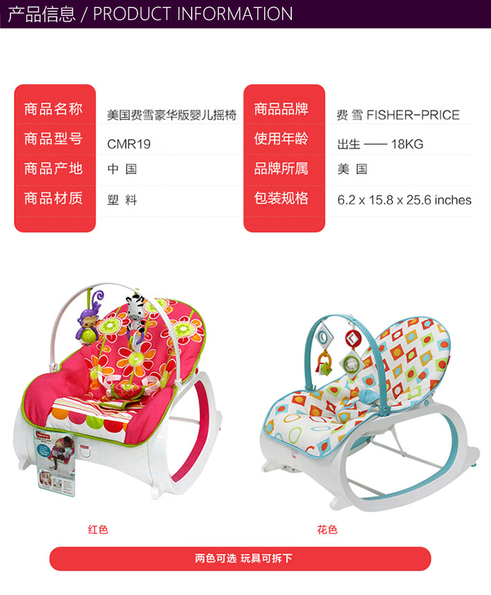 (永久下架)美国Fisher-Price费雪婴儿摇椅-GeoDiamonds 蓝色、粉色豪华款