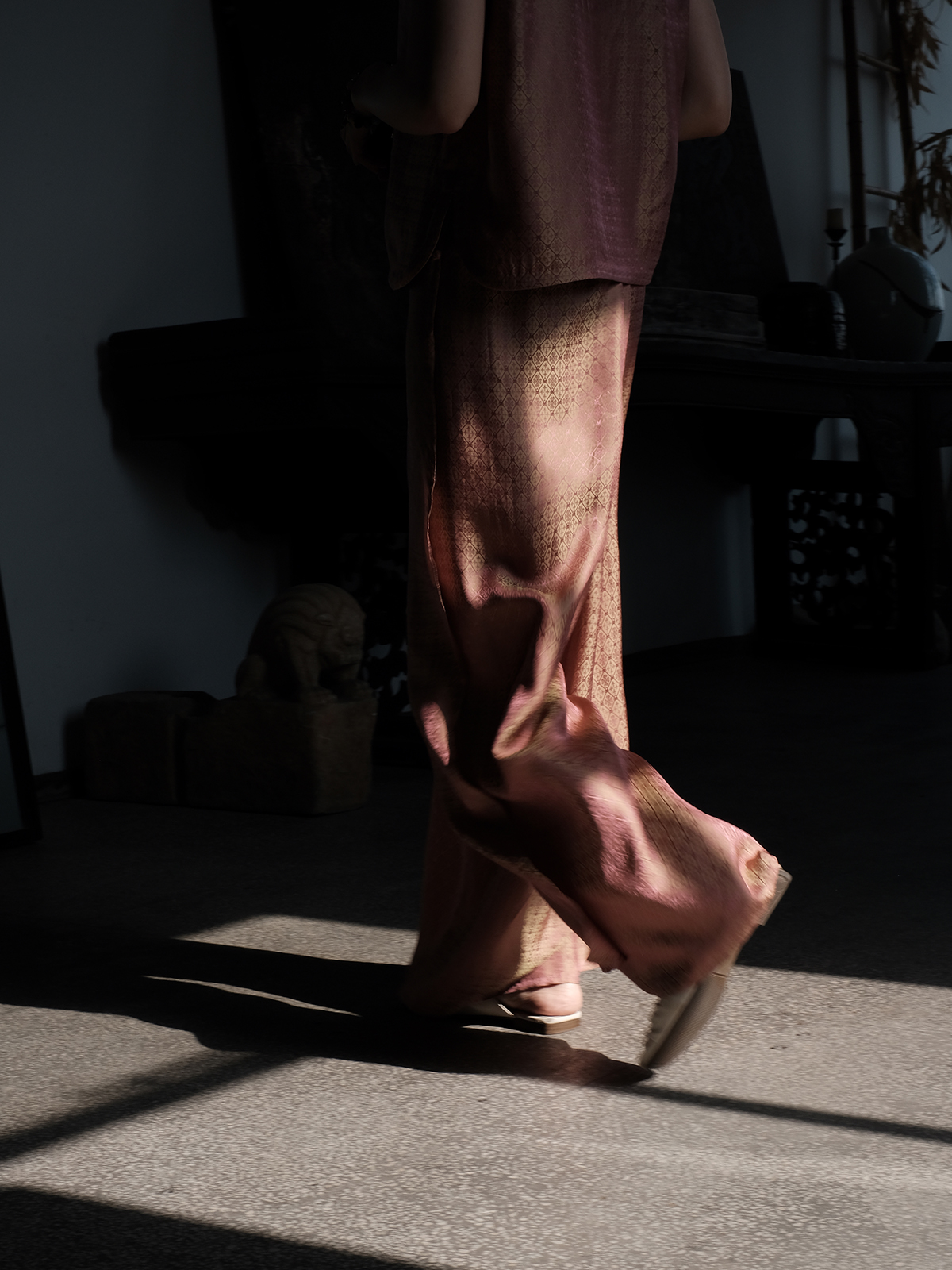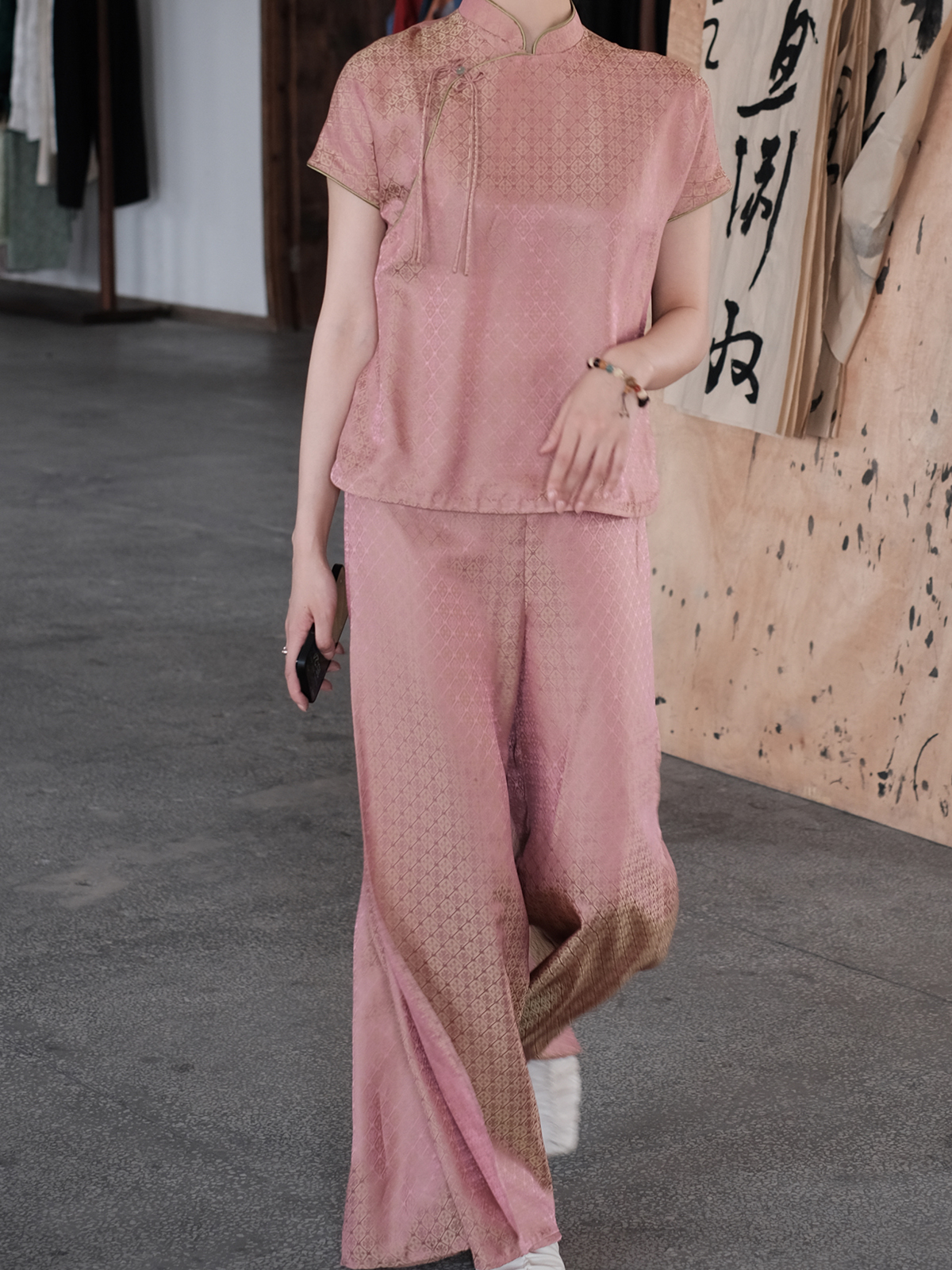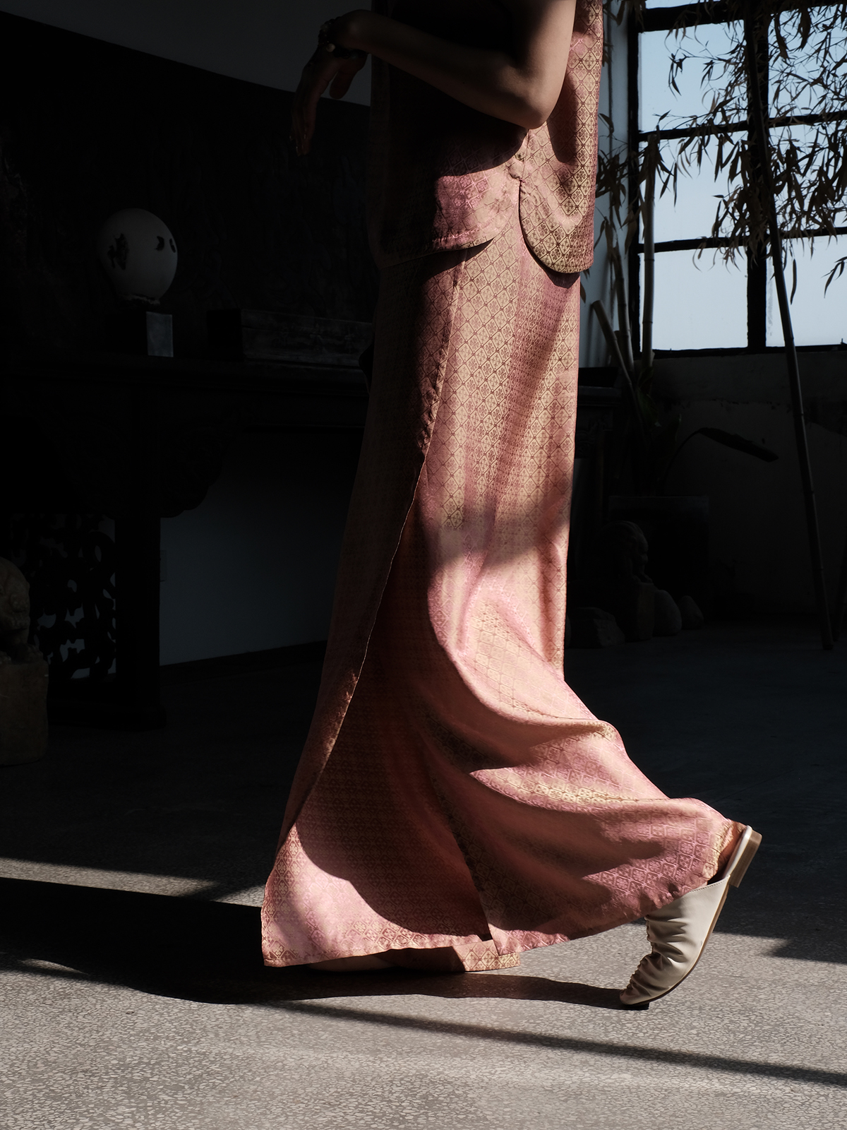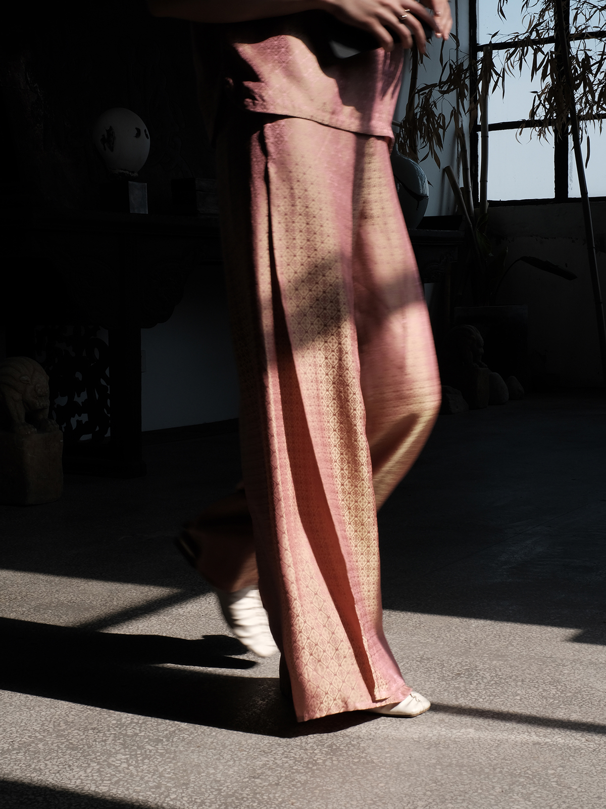 盛唐牡丹 |真丝提花侧开叉女裤