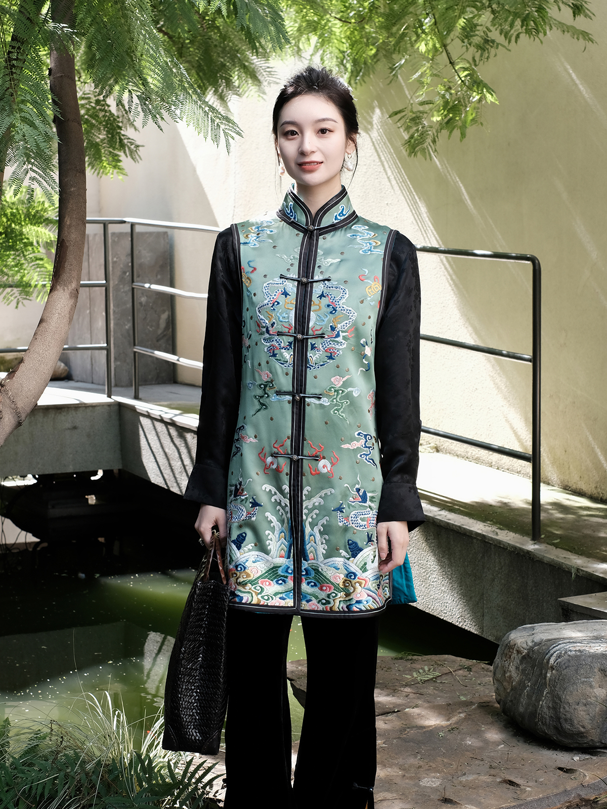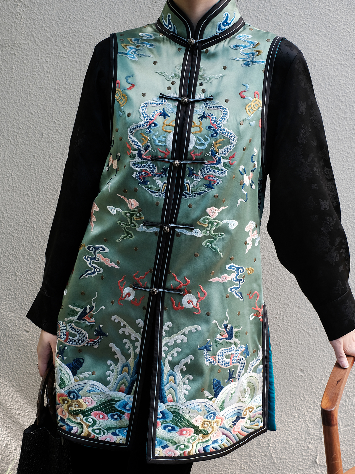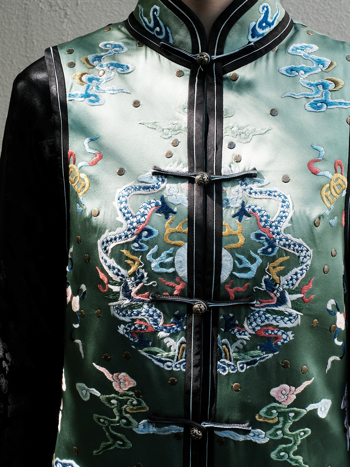 盛唐牡丹|高货-重缎真丝满绣铆钉蟒袍马甲