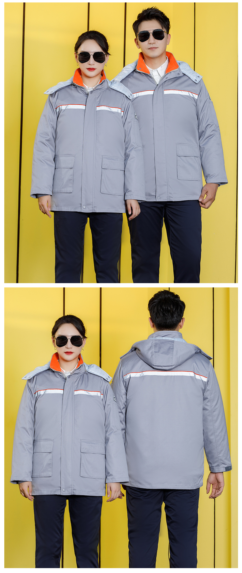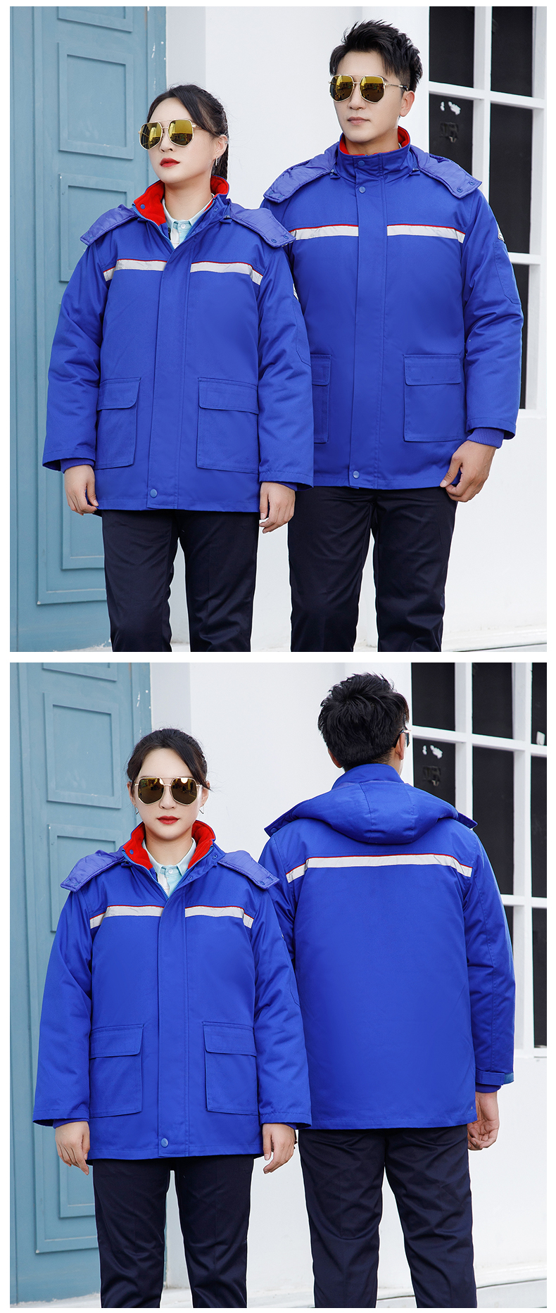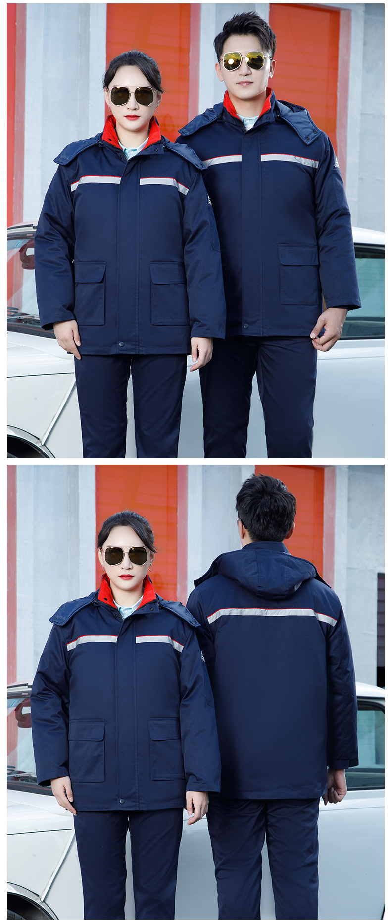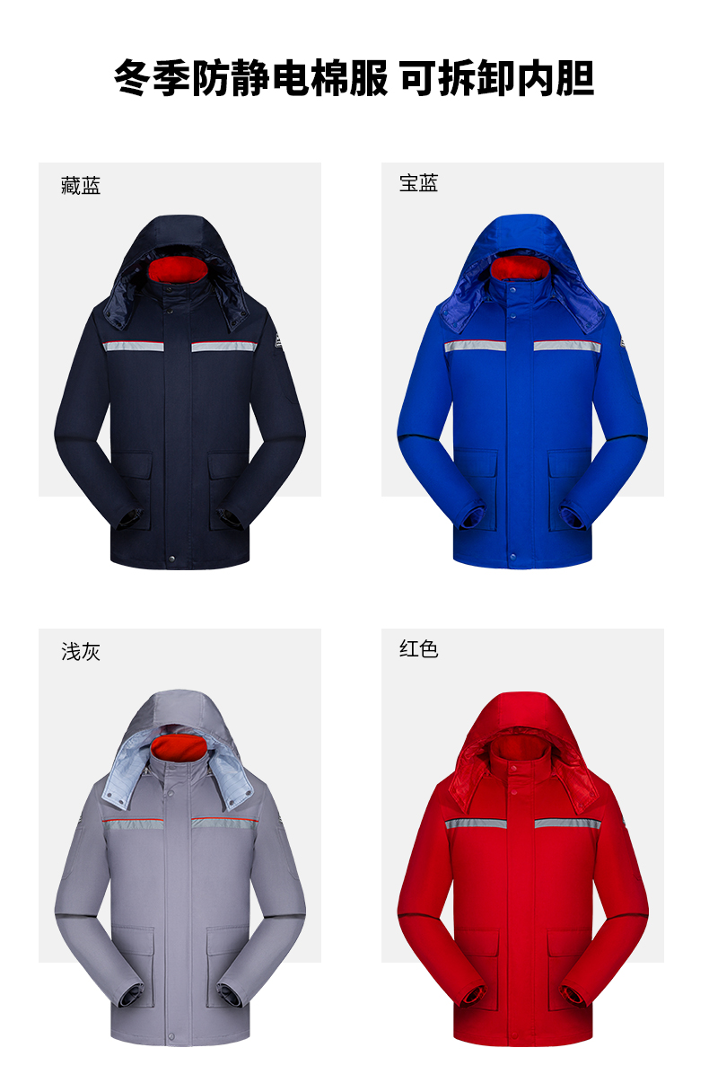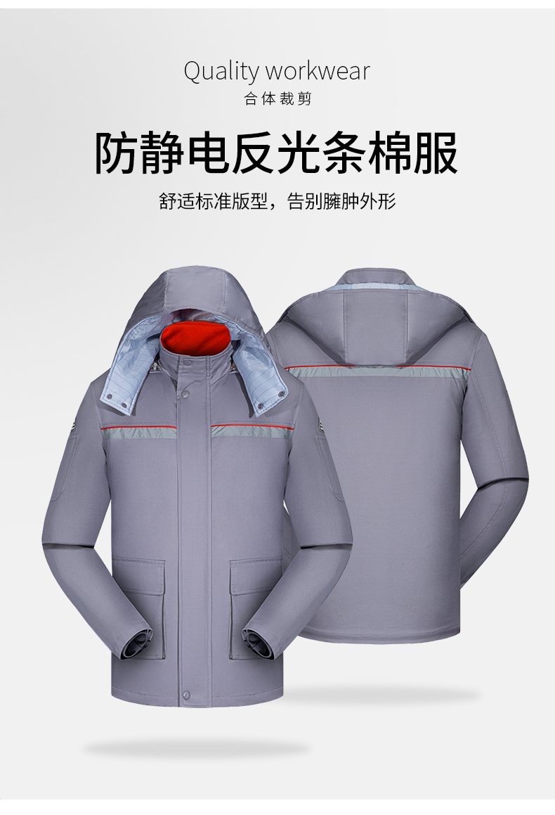 防静电工作服棉衣加油站棉服男劳保冬装保暖棉袄反光条防寒工服
