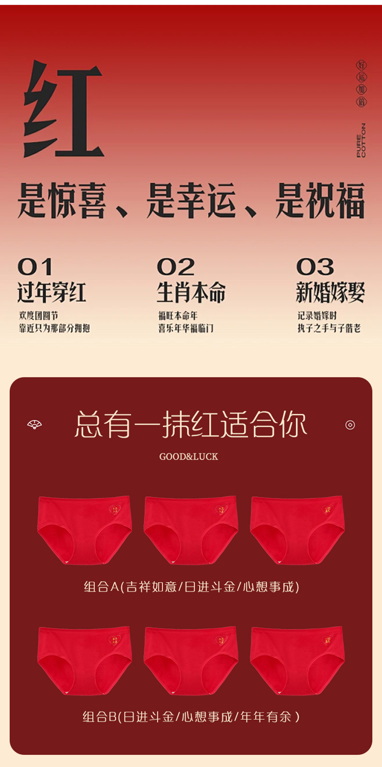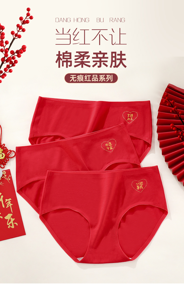 雅黛丽本命年大红色内裤女纯棉全棉裆2025新款结婚新婚女生三角裤