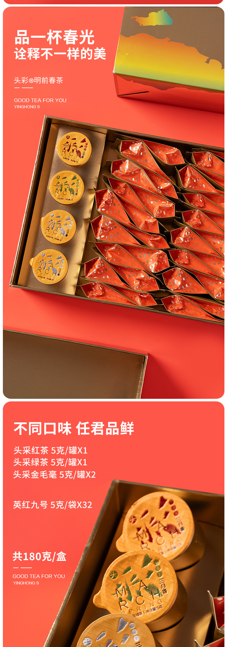 【预定N盒送N盒观海-英九50g】金毛毫+英红九号+绿茶+红茶 180g