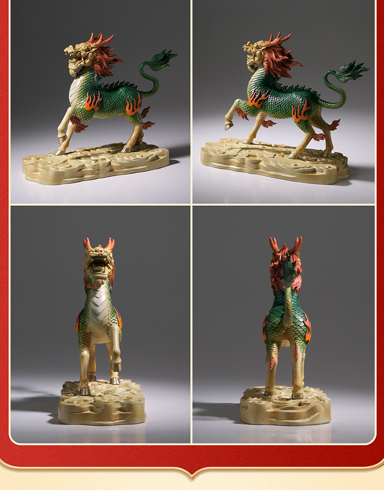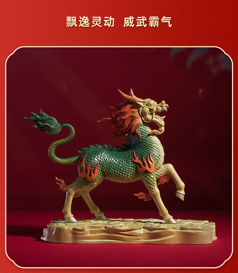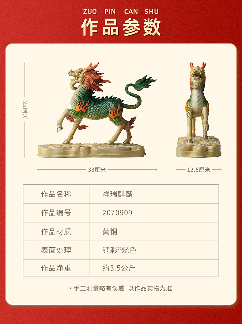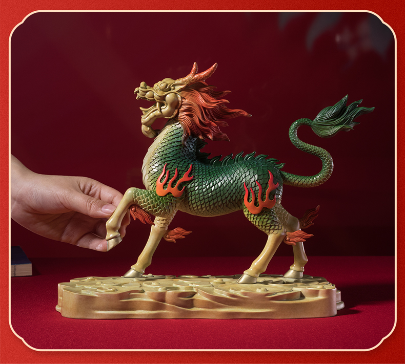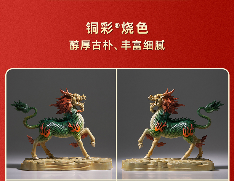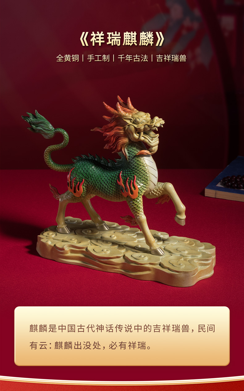 铜师傅《祥瑞麒麟(吉祥青色)》客厅桌面铜麒麟摆件 家居装饰工艺品