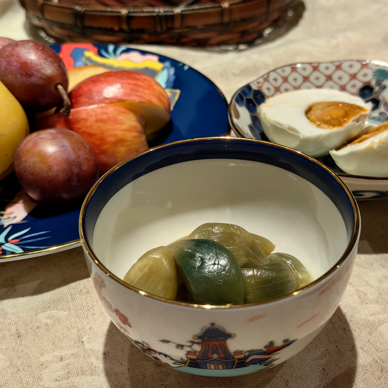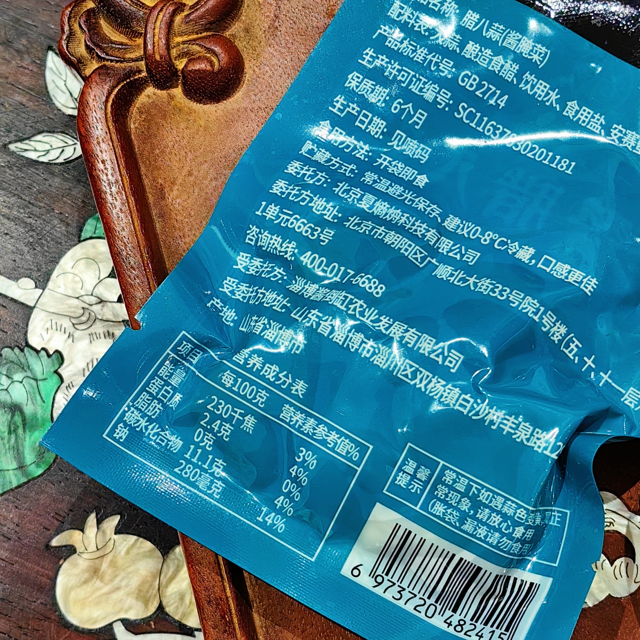 腊八蒜小小一包,翡翠绿色很是特别,味道更是迷人,它融合了蒜的辛辣与醋的酸香,很是酸脆爽口,淡淡的甜意和微妙的香气在口中缓缓散开,真的是我的爱啊!日常配炸酱面、配小米粥都很合适,也可以搭火锅!腊八蒜不仅口感丰富,还具有很高的营养价值,蒜中的大蒜素在醋的作用下更容易被人体吸收,具有杀菌消炎、预防感冒等多种功效,偶尔吃吃对身体还是蛮不错的哦!