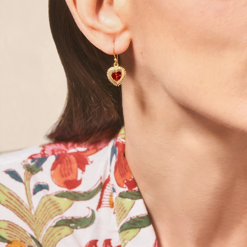 北京仓|Tityaravy-Gini-金色 心形 石榴石 吊坠 耳环(单只)[法国设计师]