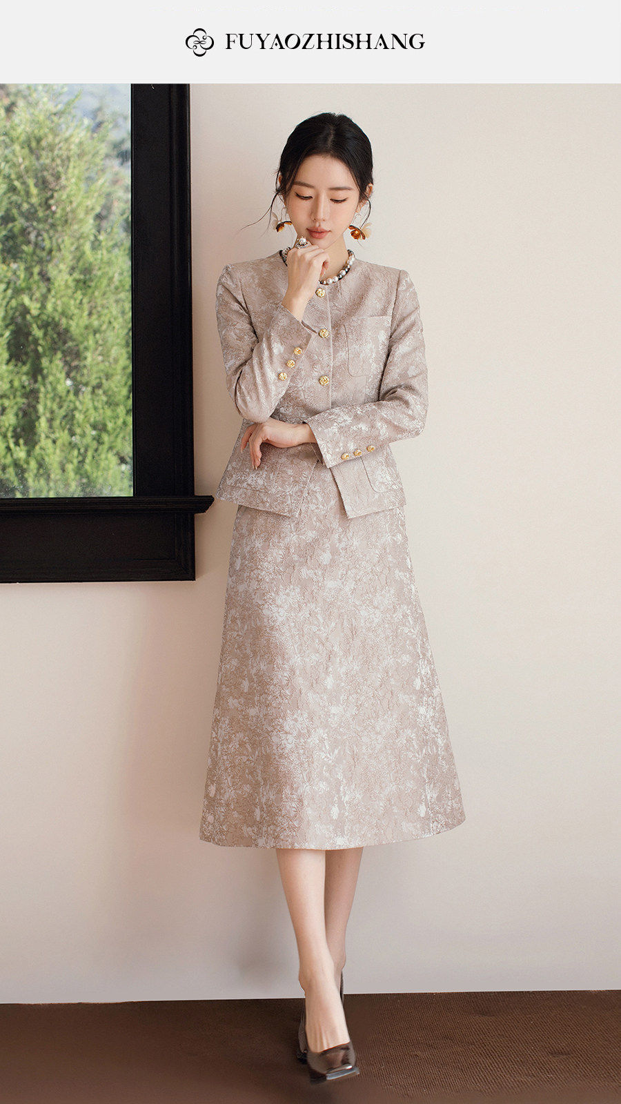 FUYAO扶摇直上 高级感西装套装女轻奢古典风高级感西服两件套春季