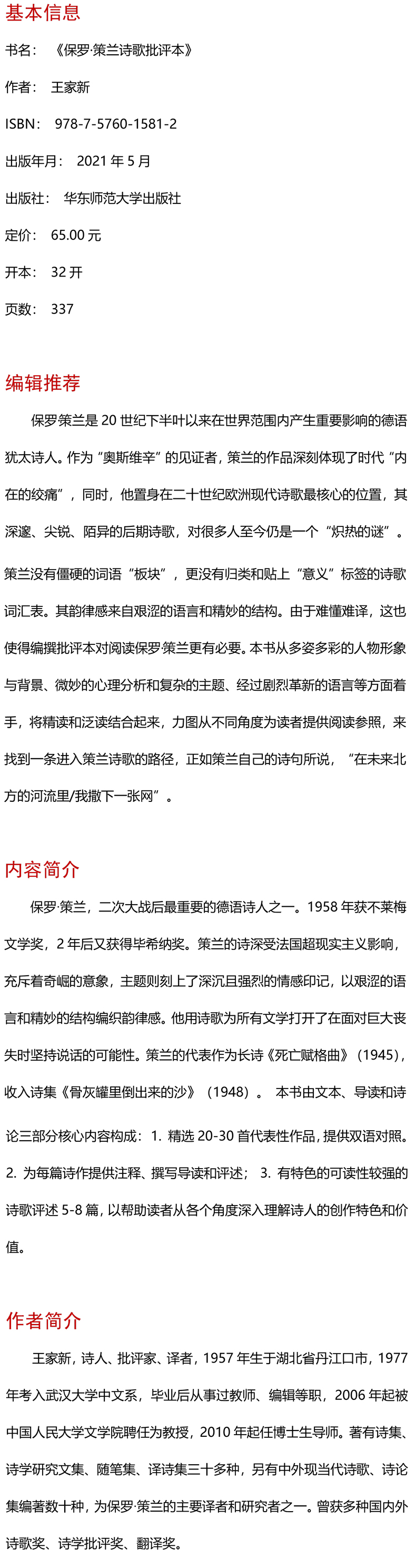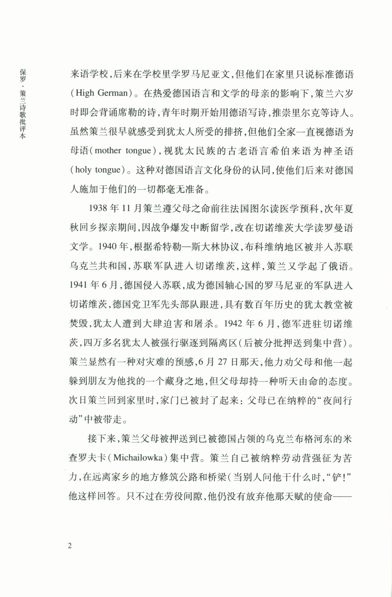 保罗·策兰诗歌批评本 十九首世界诗歌批评本丛书 德语犹太诗人保罗策兰诗歌导读评论研究文选