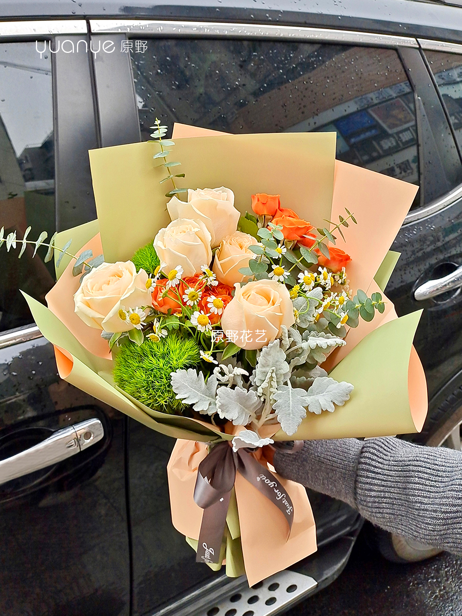 【我只钟情于你】香槟玫瑰混搭韩式花束
