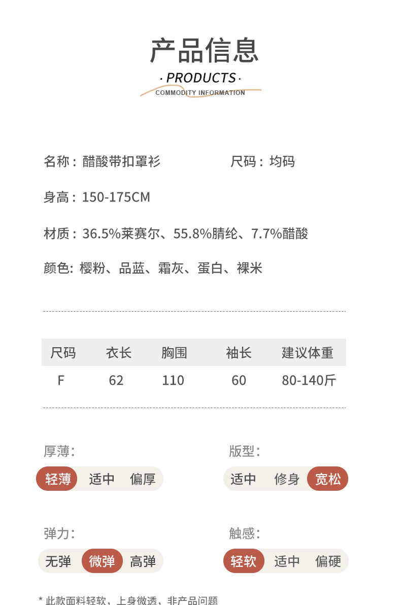 2024夏季醋酸天丝莱赛尔带扣罩衫 含NAIA醋酸面料标 防晒长袖打底衫空调衫 【夏日服饰专场】